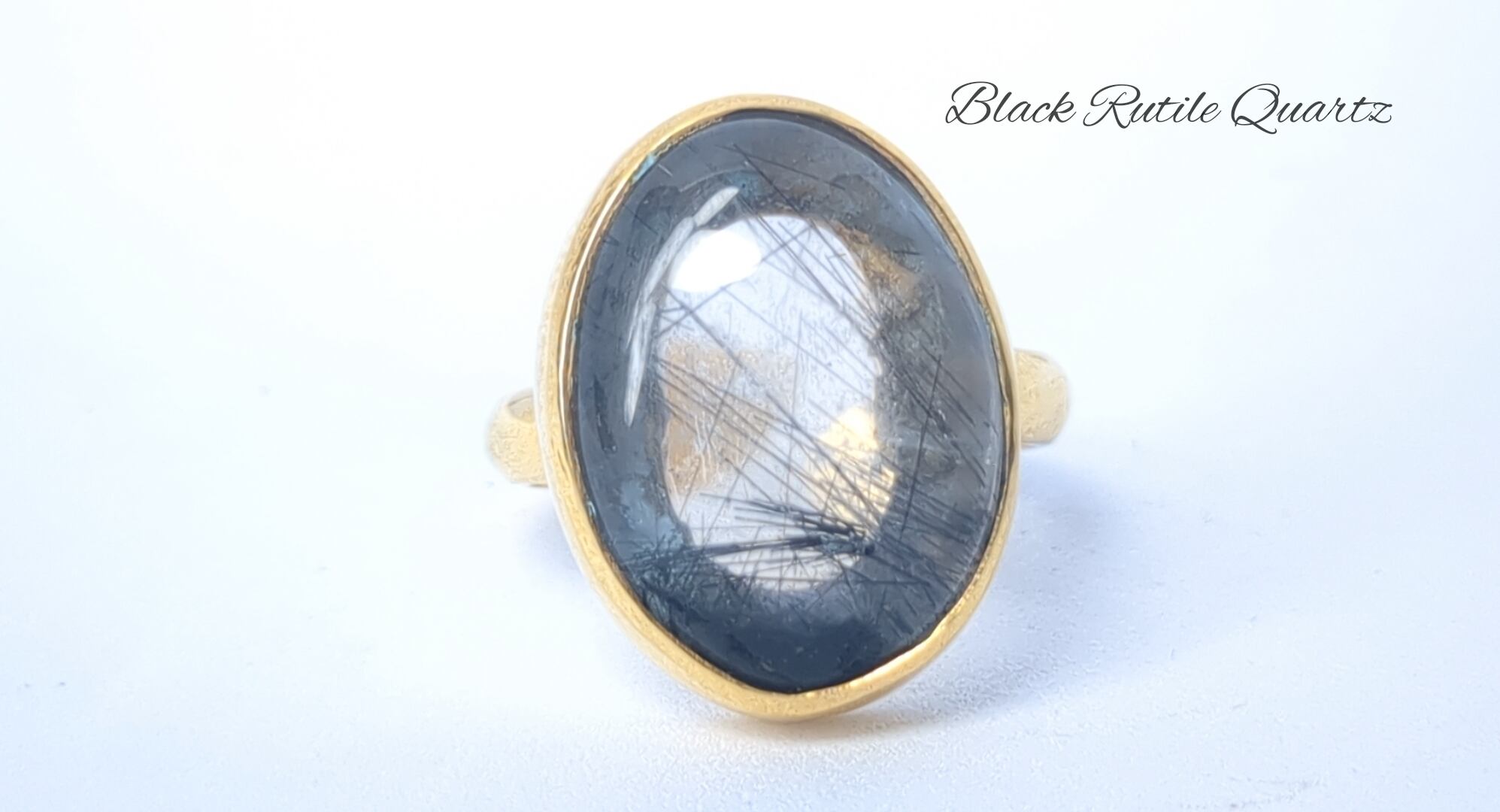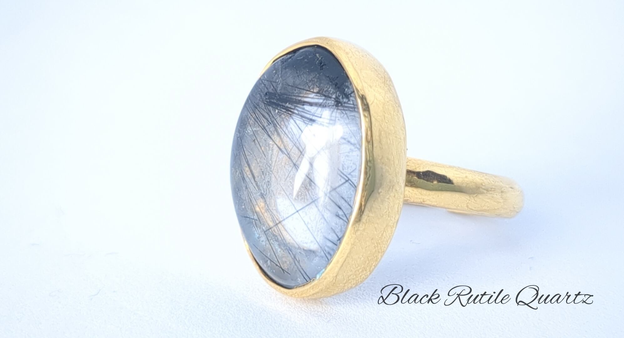 最新作「ブラックルチルクォーツ」のオーバル天然石リング