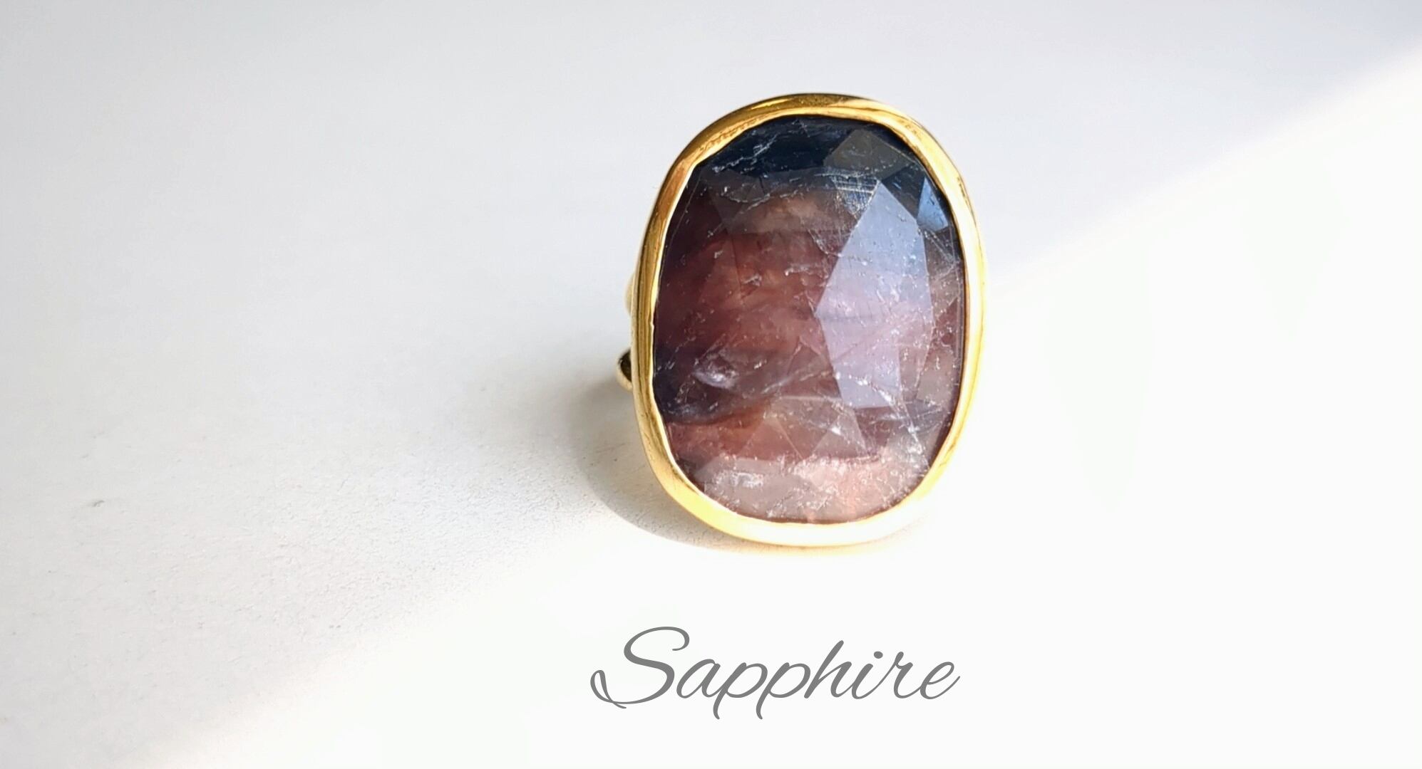 最新作★希少「バイカラーオレンジサファイア」の世界でひとつの天然石リング