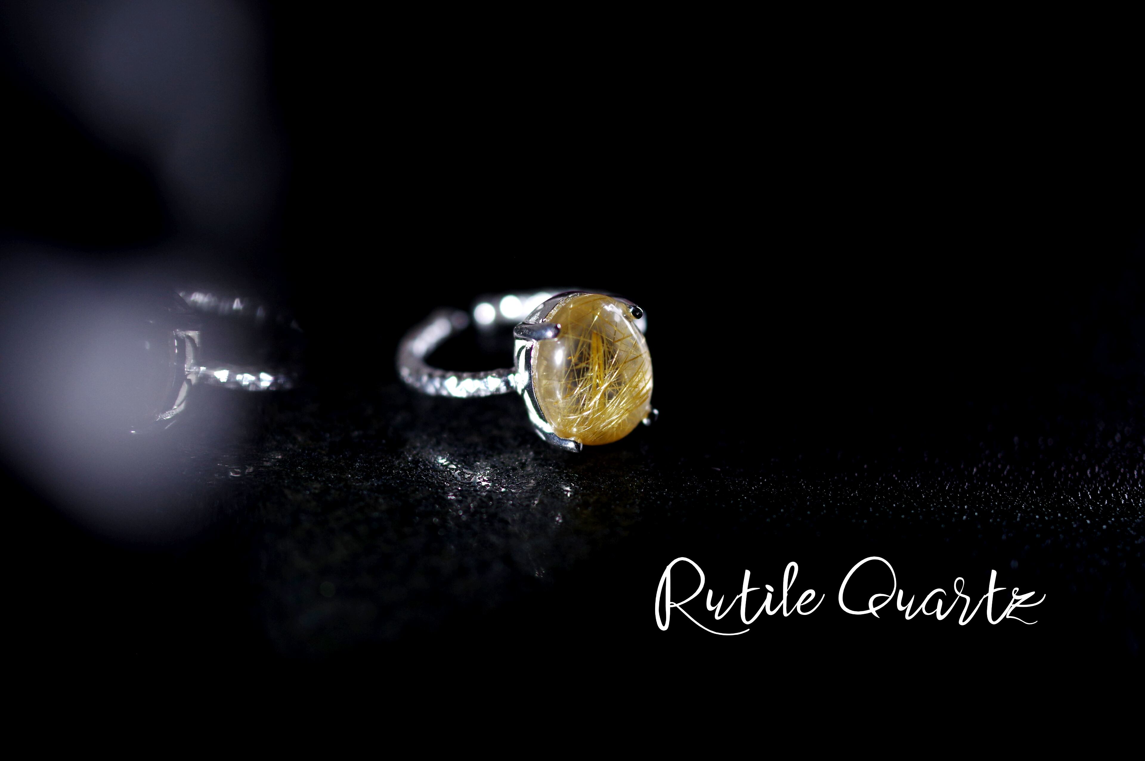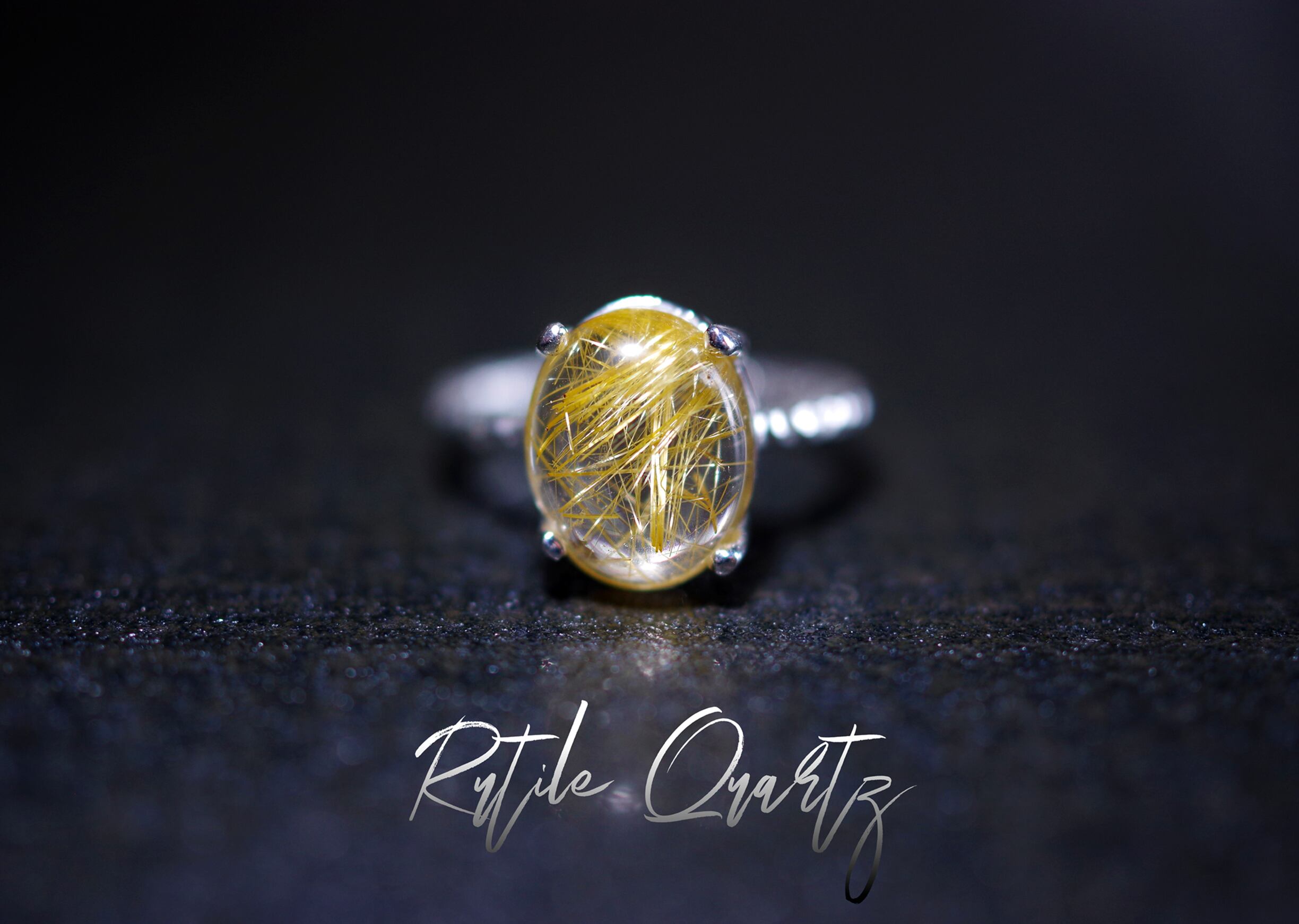 天然石の中にある金色の線のある天然石で有名なルチル。チルクォーツとシルバー925 のリングを合わせたシンプルで大人可愛い商品。
