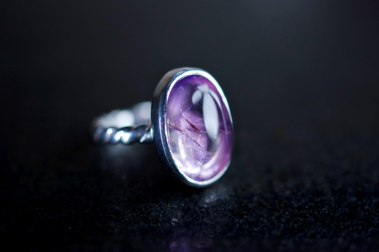 パープルの綺麗なアメトリンに細かくカットが施されていて