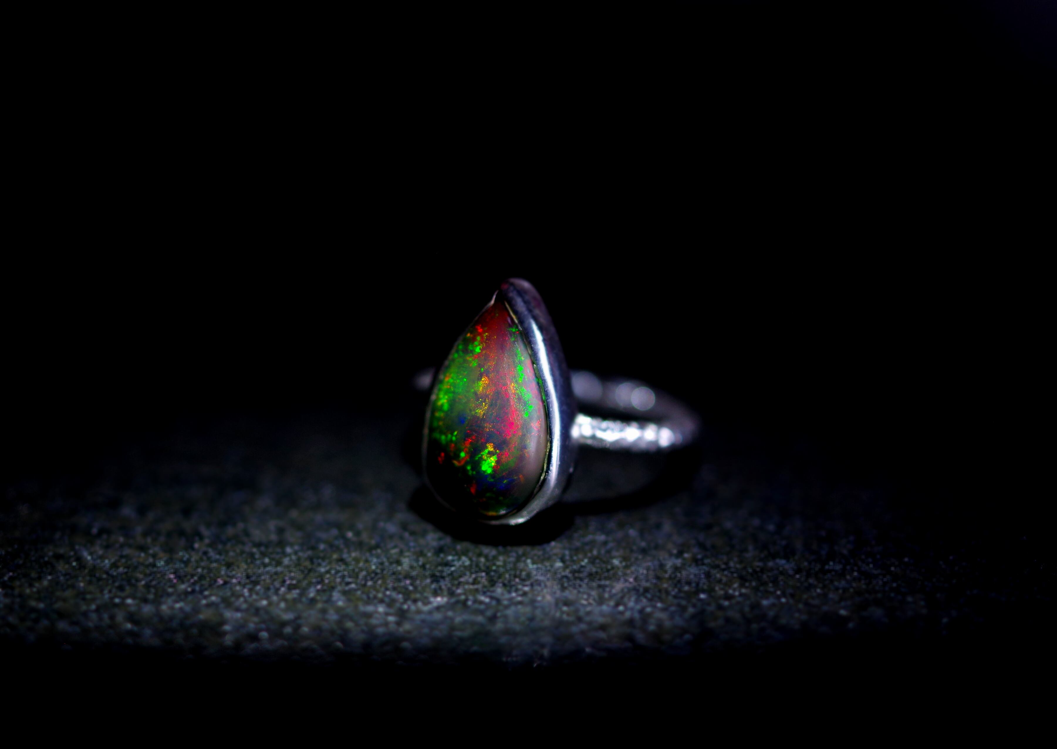 天然のオーストラリア産ブラックオパールを使ったシルバーリング。