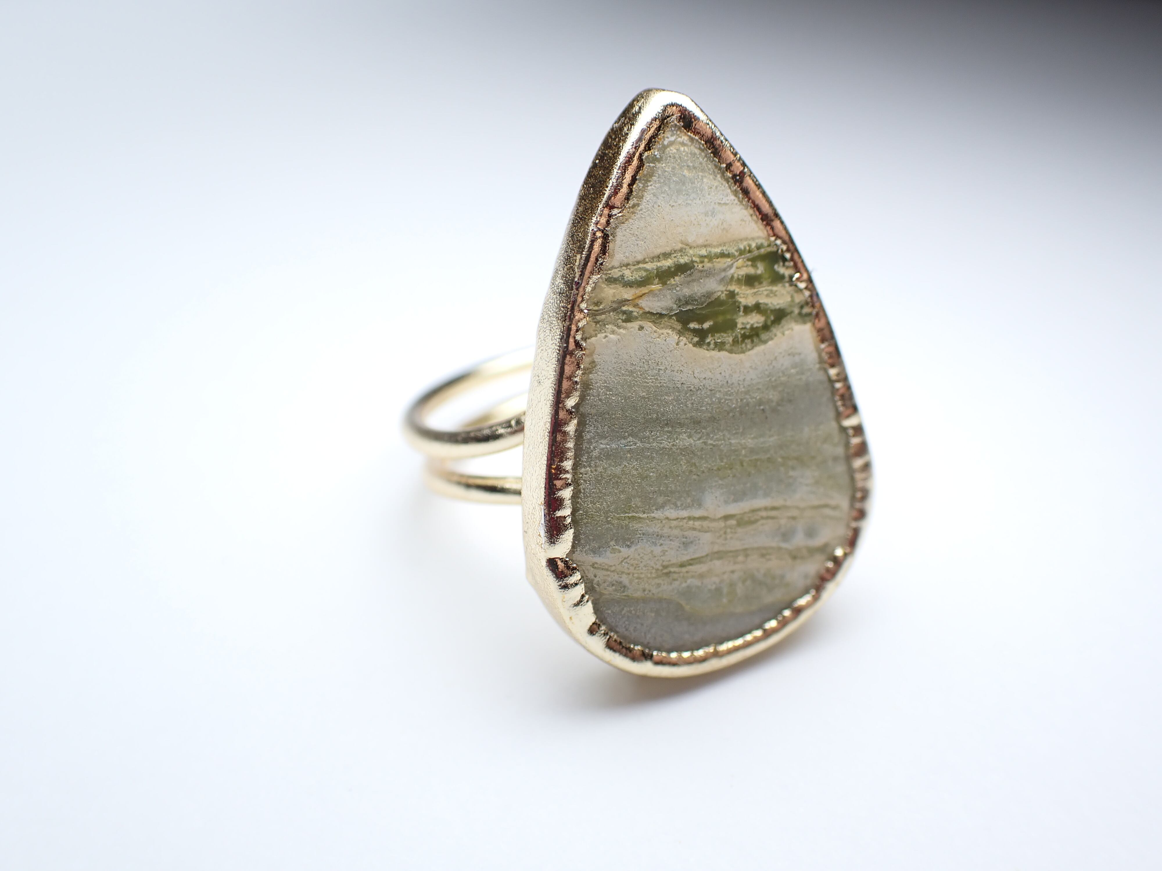 たくさん石の中から選りすぐりの石を選び、イスタンブールアトリエにて共同でデザインして作った世界でたったひとつのBrassにkgp18コーティングのリング★
