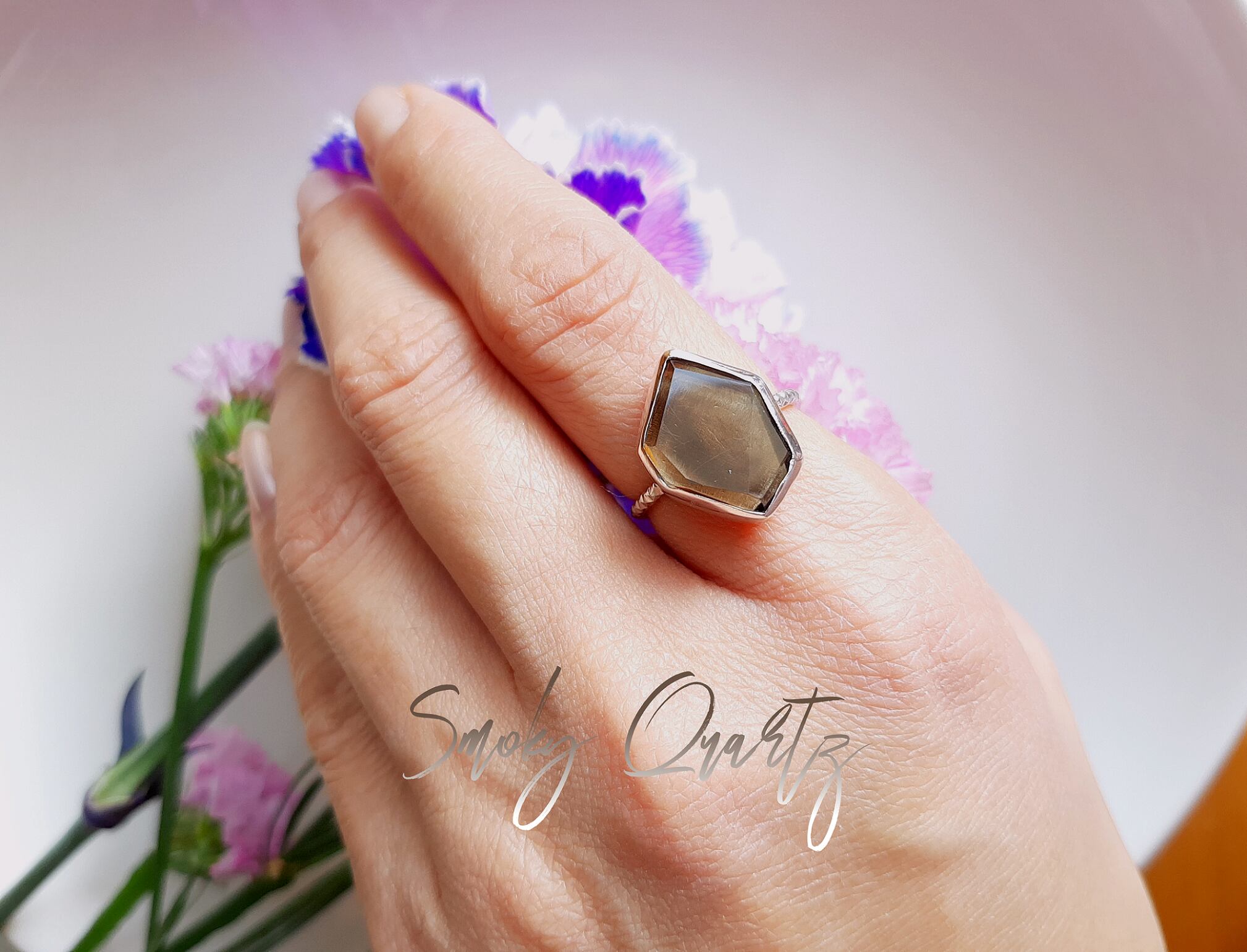 New『スモーキークォーツ』の世界でひとつの天然石リングsilver925