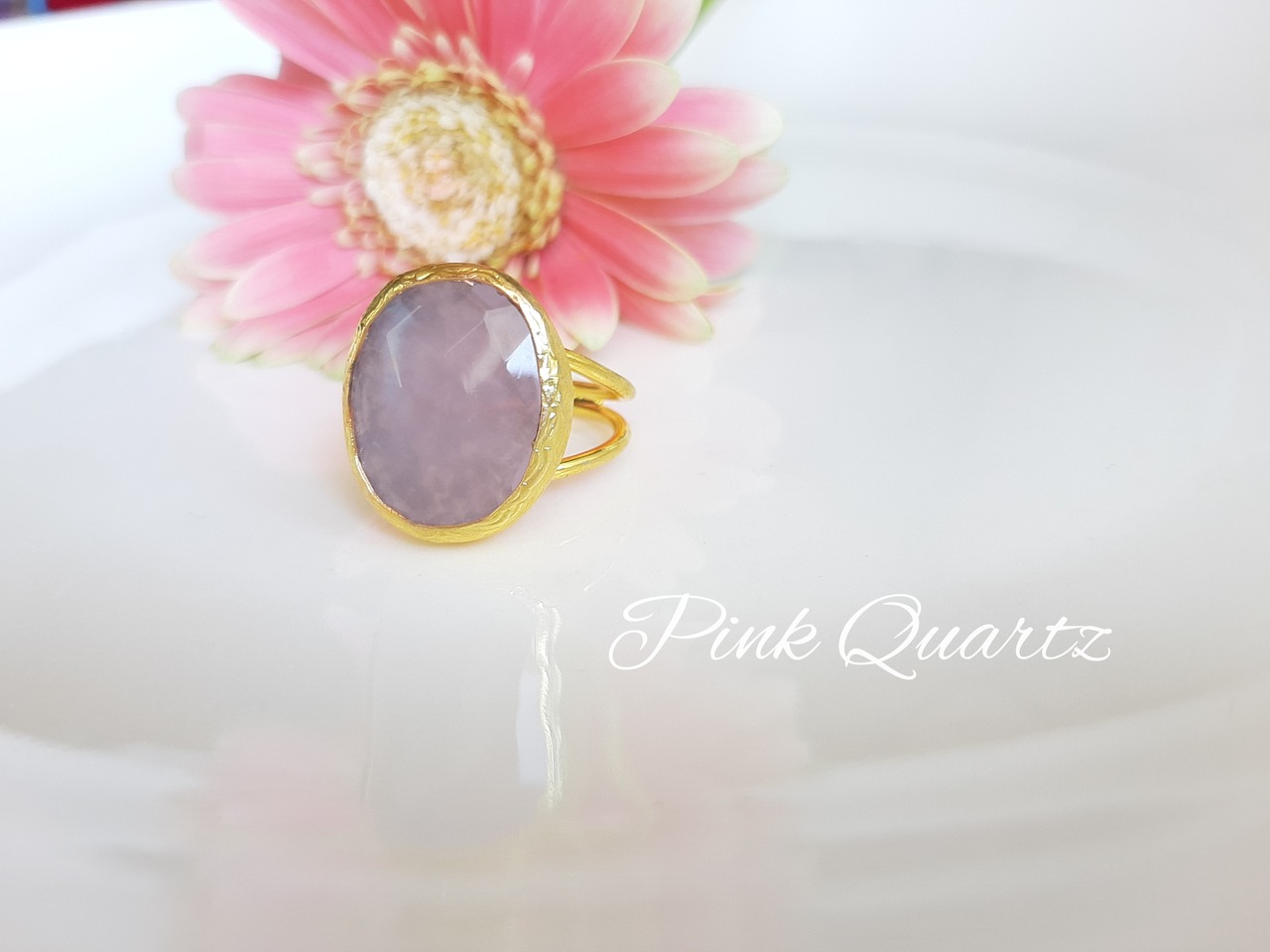『大きなピンククォーツ』の世界でひとつの天然石リング