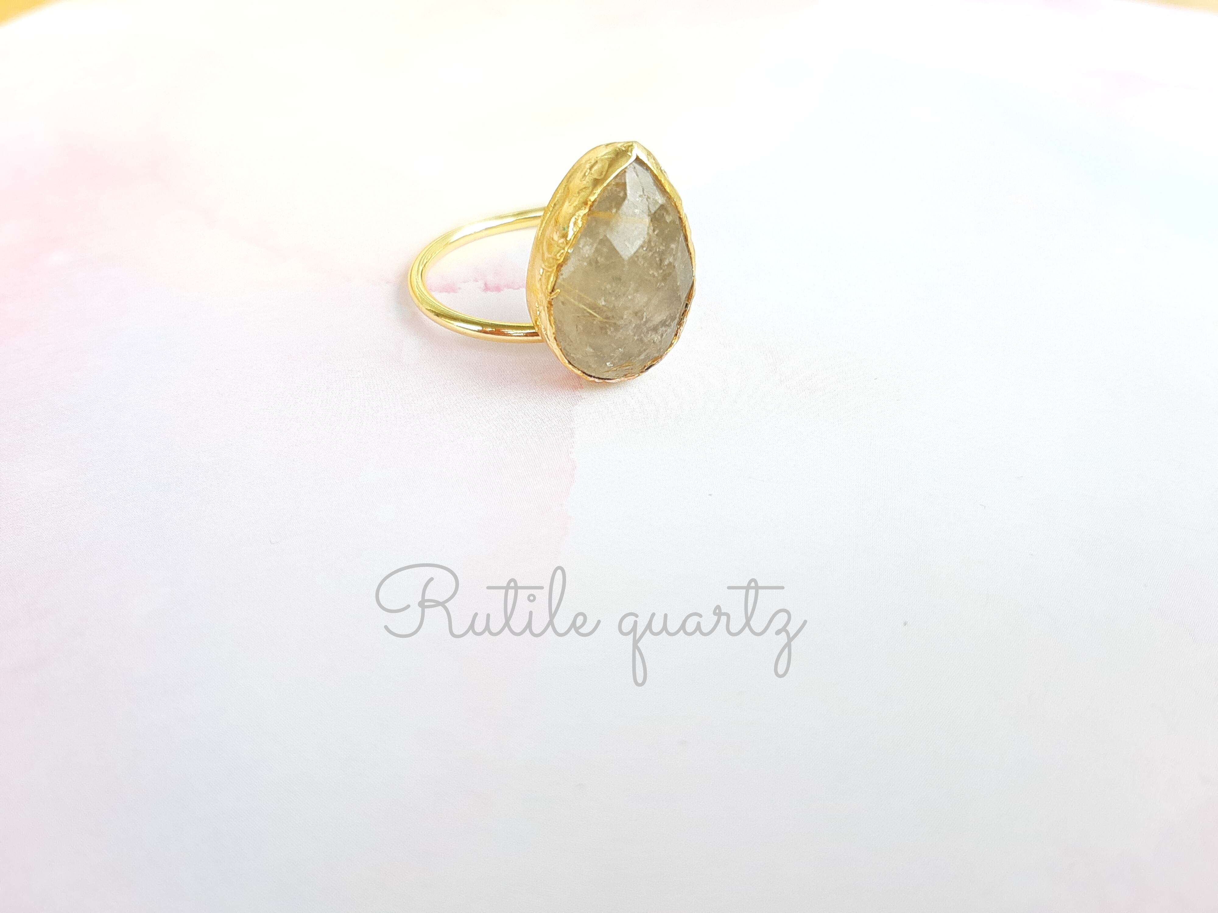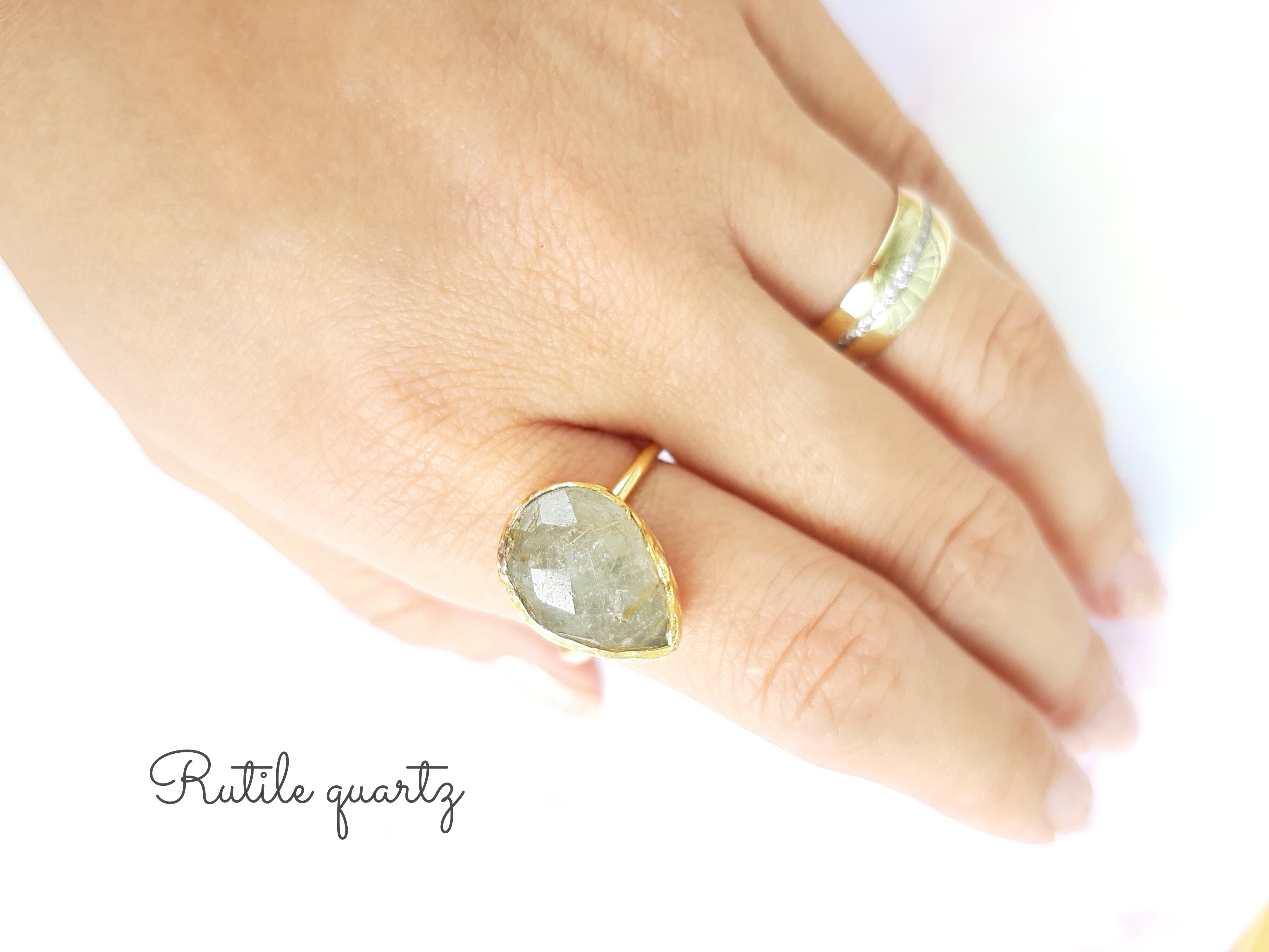 トルコのジュエリーデザイナーがデザインして作った世界でたったひとつのリング。素敵な一粒天然石のルチルクォーツのリングです。
