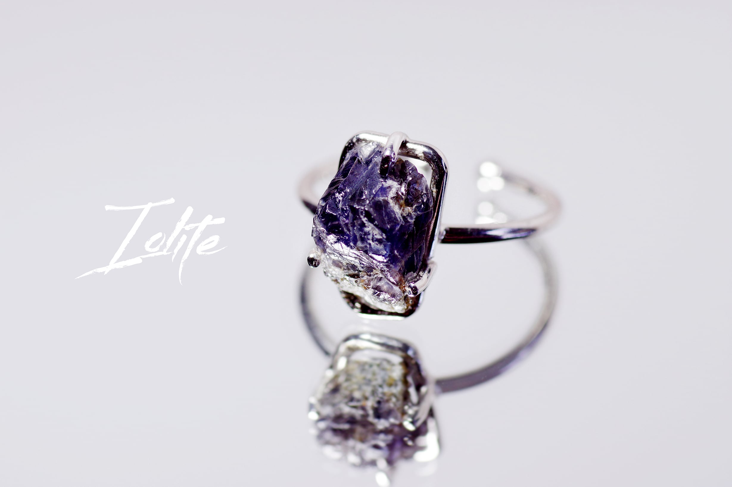 New『原石アイオライト』の世界でひとつの天然石リングsilver925 + ロジウムコーティング