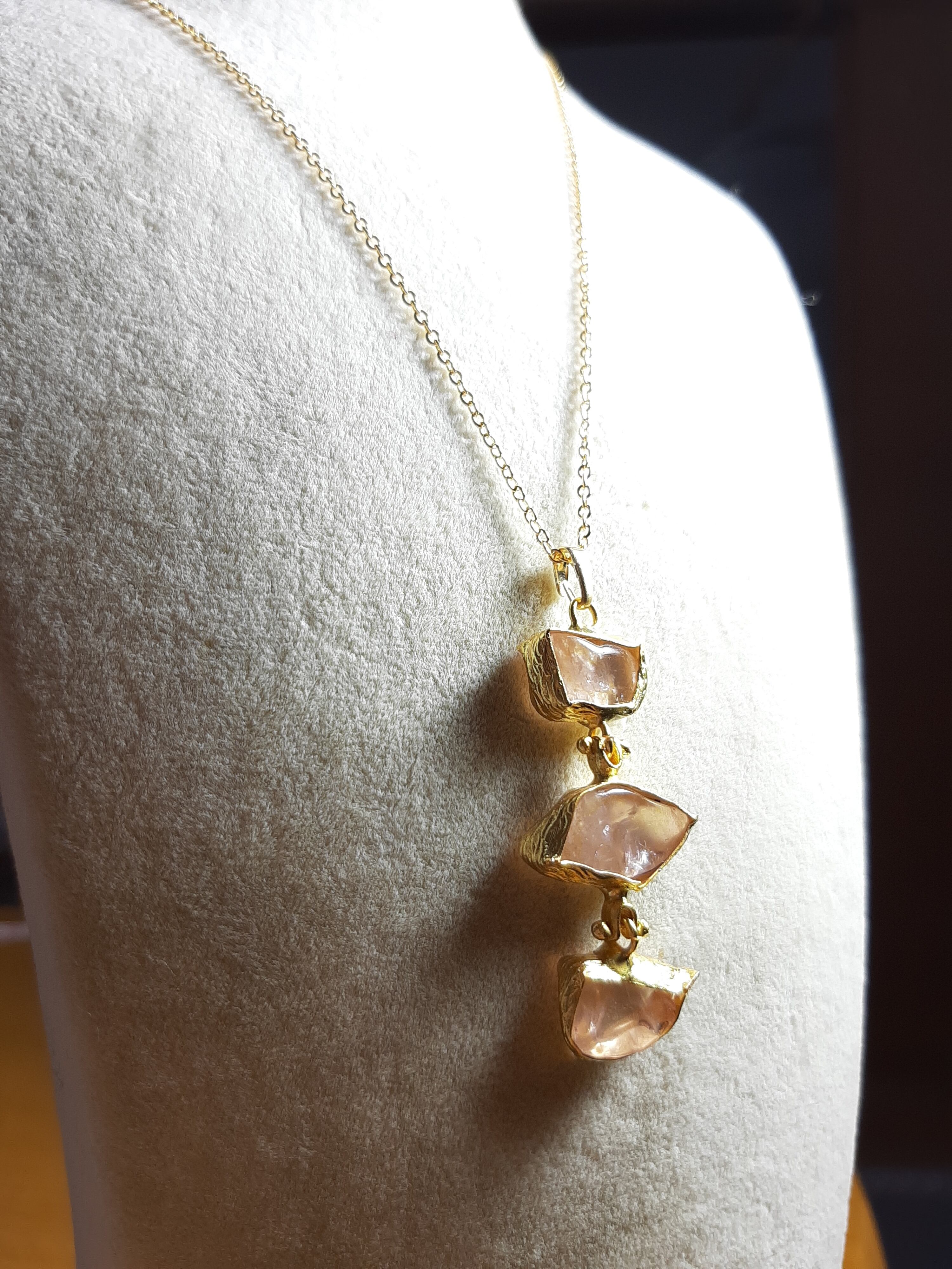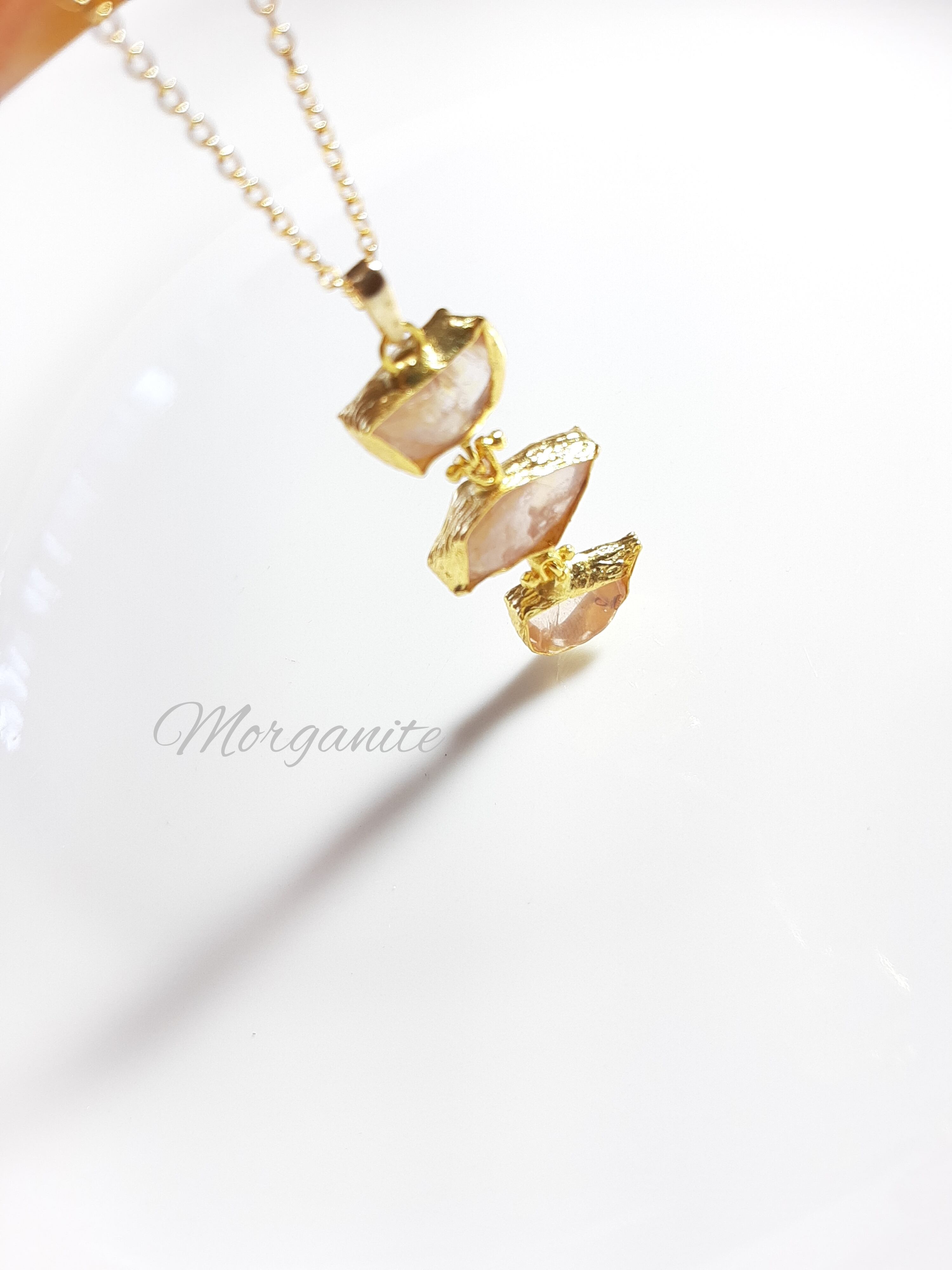 素敵な3粒天然石のモルガナイトネックレスです。