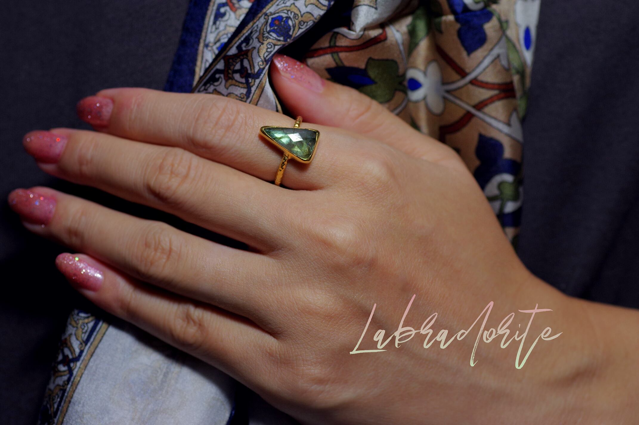 New『ラブラドライト』の世界でひとつの天然石リングsilver925 + 22kgf