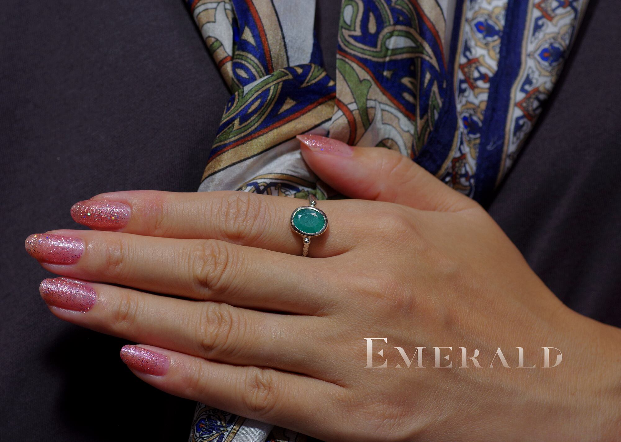 イスタンブールのジュエリーデザイナーがデザインして作った世界でたったひとつのsilver925+ロジウムコーティングのエメラルドのリング★