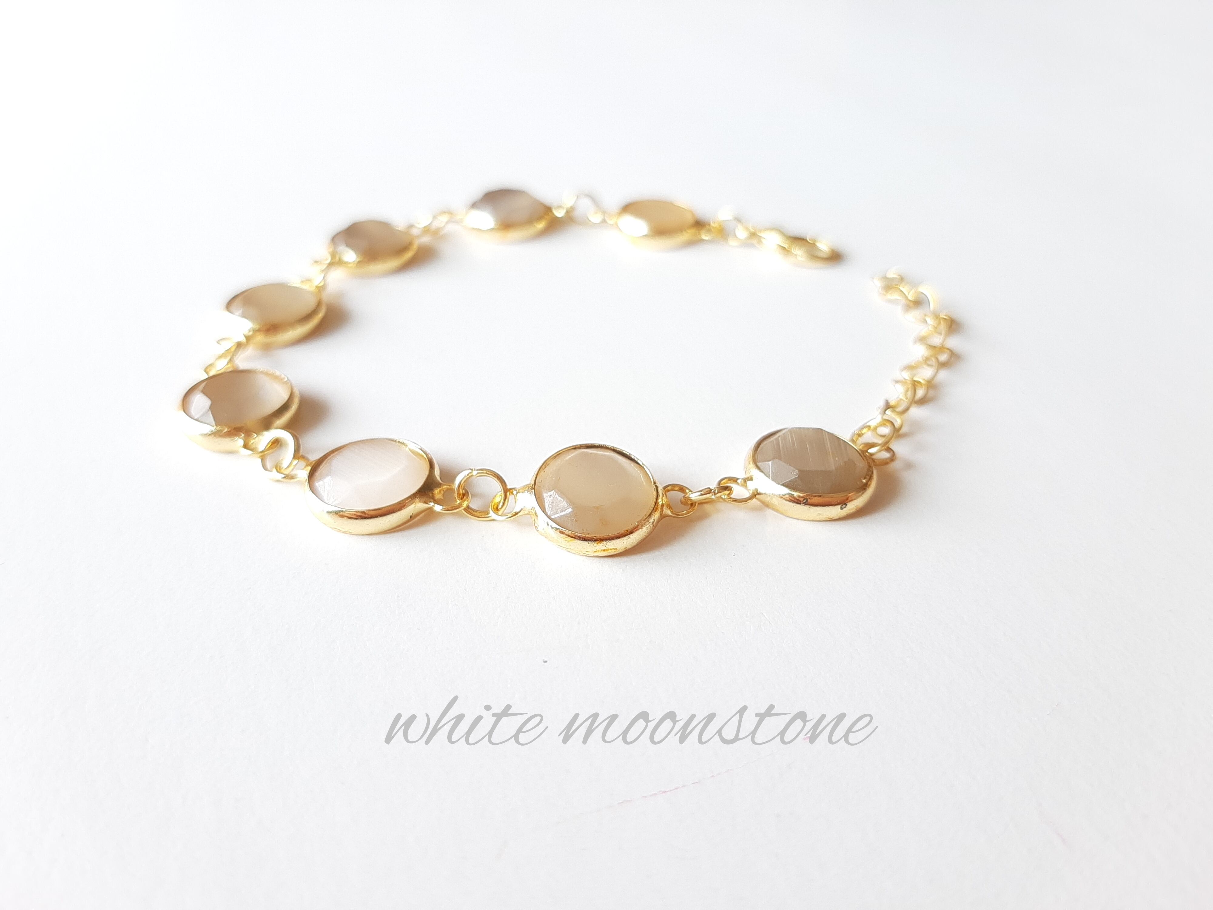 『ホワイトムーンストーン』の世界でひとつの天然石ブレスレット