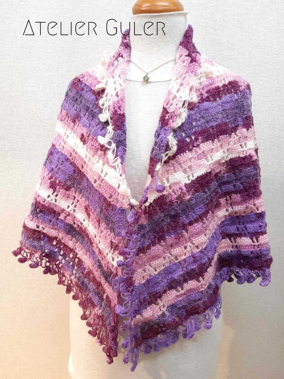 1000円off Made in Turkey『ブルーベリー&クランベリー』の世界でひとつの手編みストール マフラー