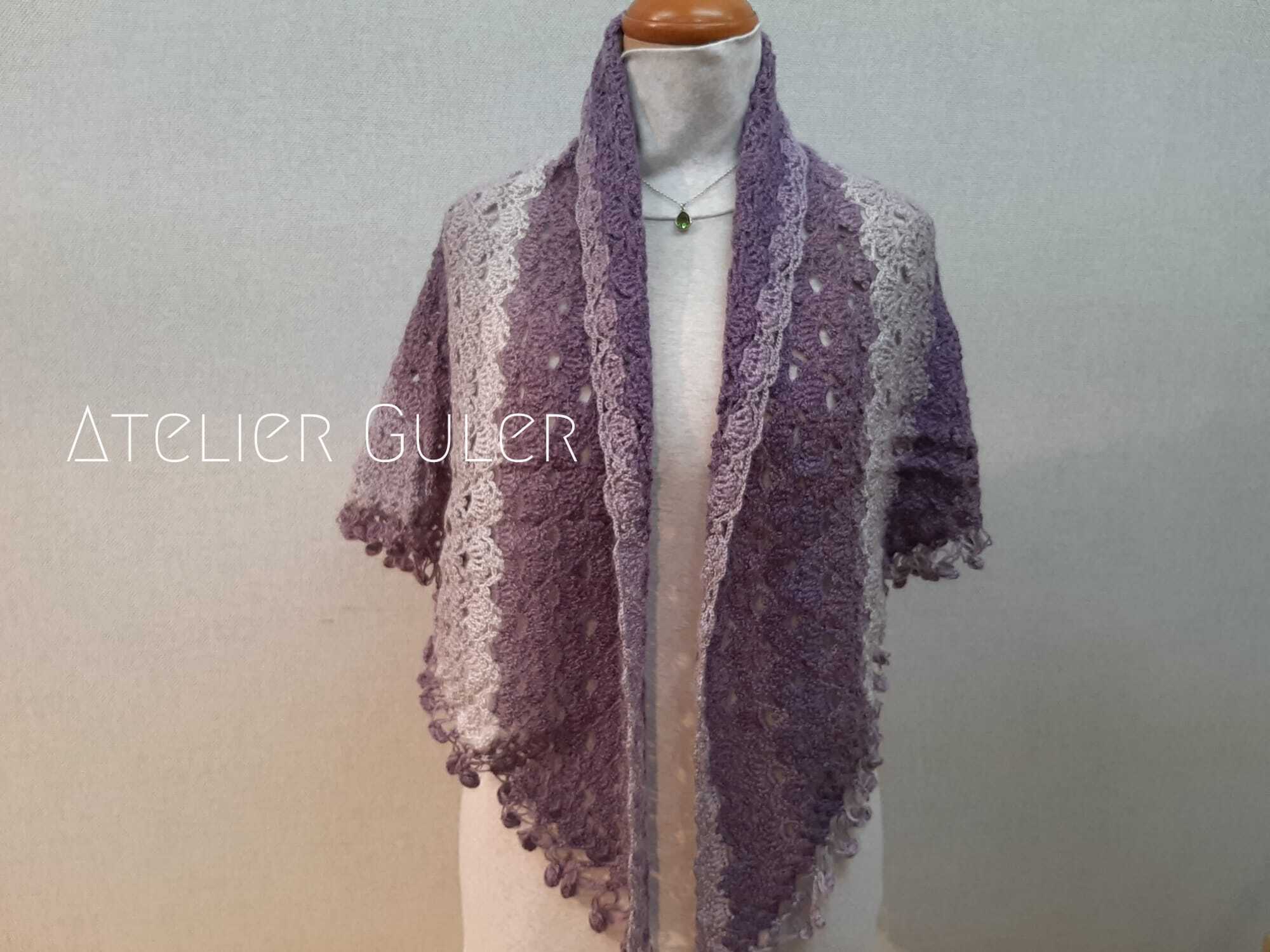 1000円off Made in Turkey『淡いパープルグラデーション』の世界でひとつの手編みストールマフラー