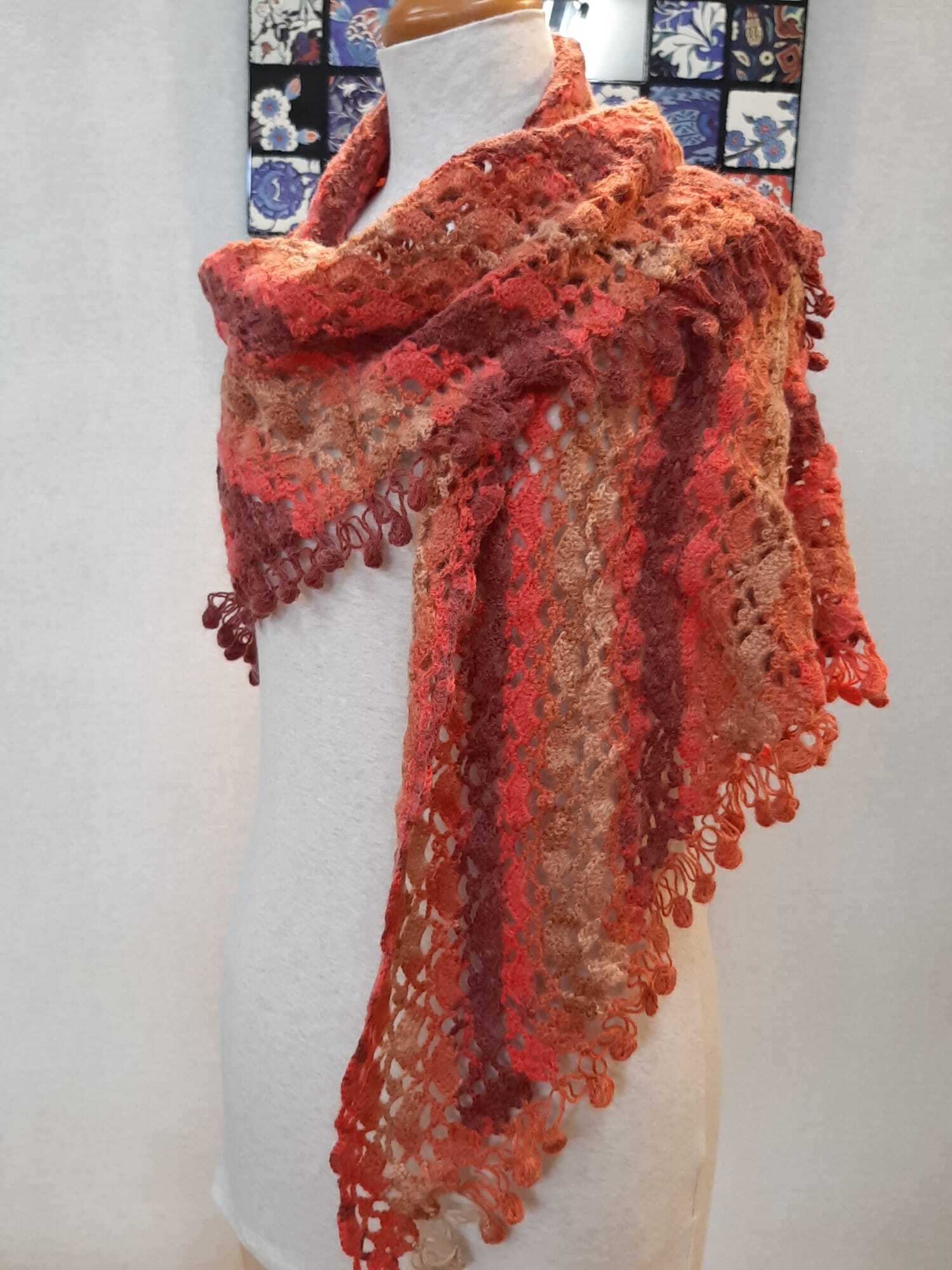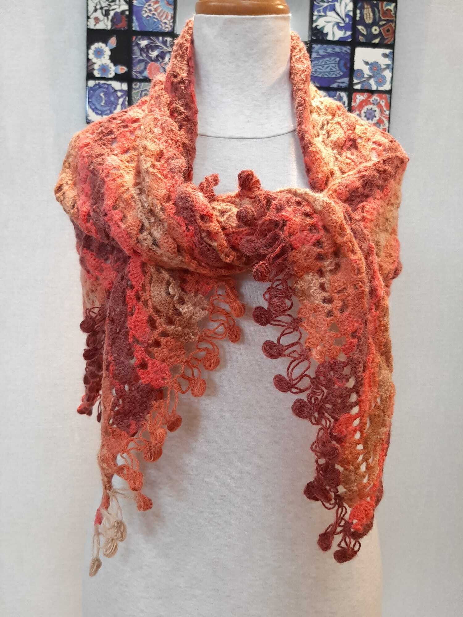 1000円off Made in Turkey『オレンジグラデーション』の世界でひとつの手編みストールマフラー