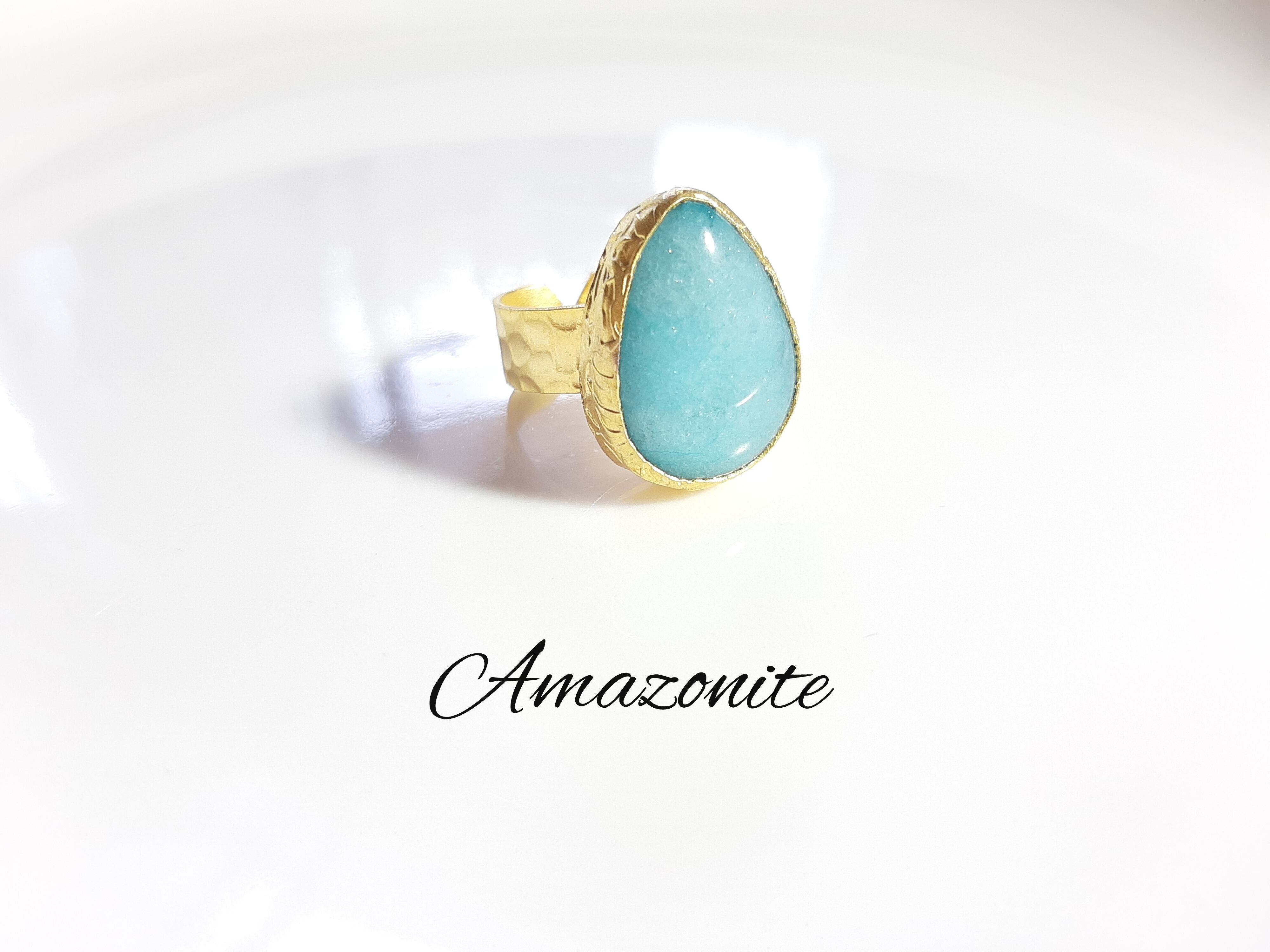 『アマゾナイト』の素敵なしずくの1粒リングです。