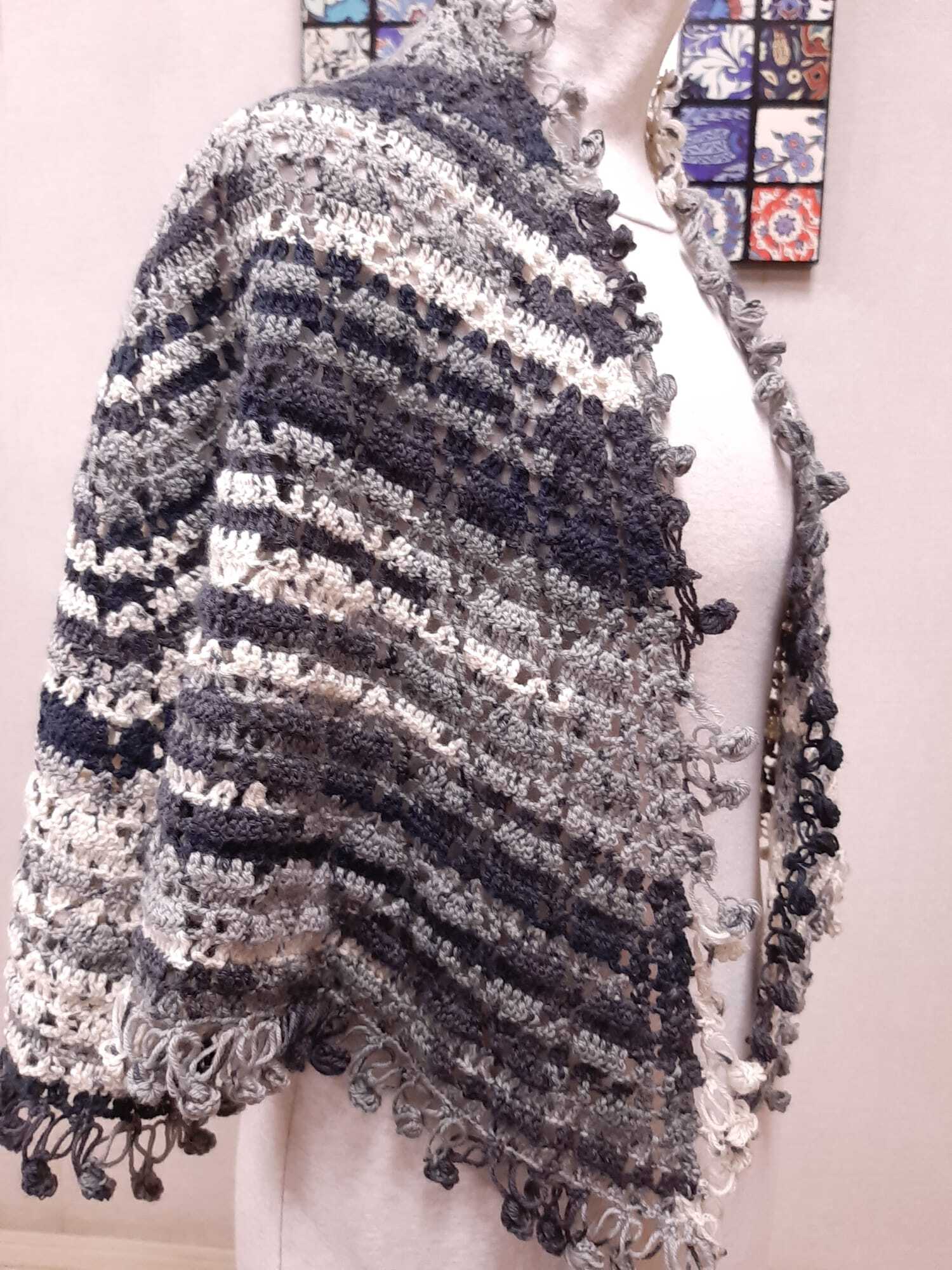 1000円オフ『ゼブラカラー』の世界でひとつの肩掛け手編みストールマフラー