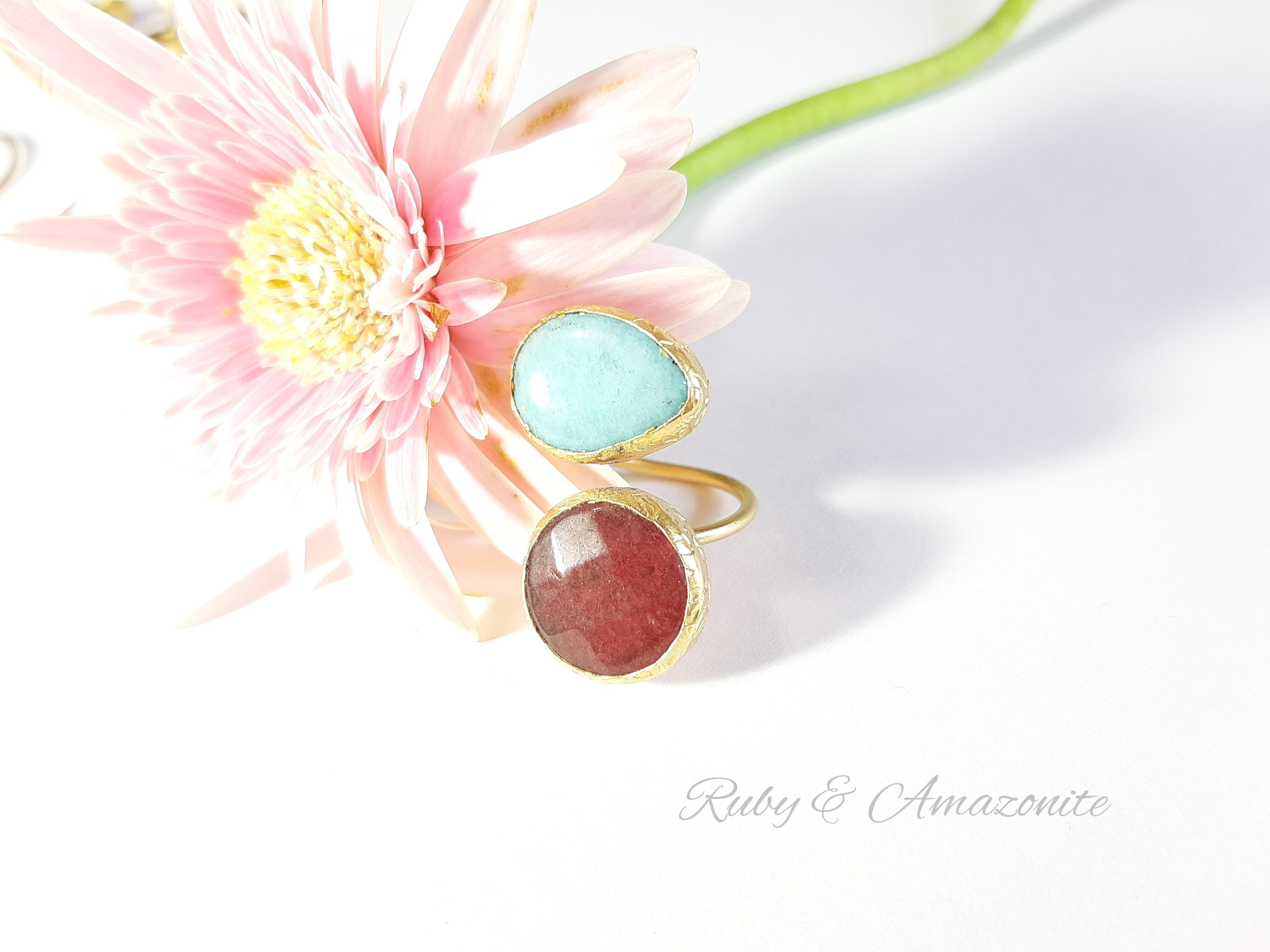 New『Ruby & Amazonite』の世界でひとつの二粒天然石リング