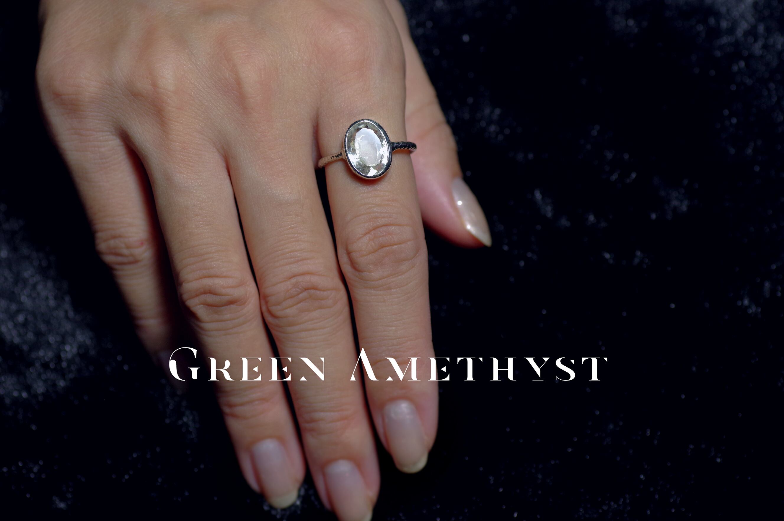 New『Green Amethyst』の世界でひとつの天然石リングsilver925 + ロジウムコーティング