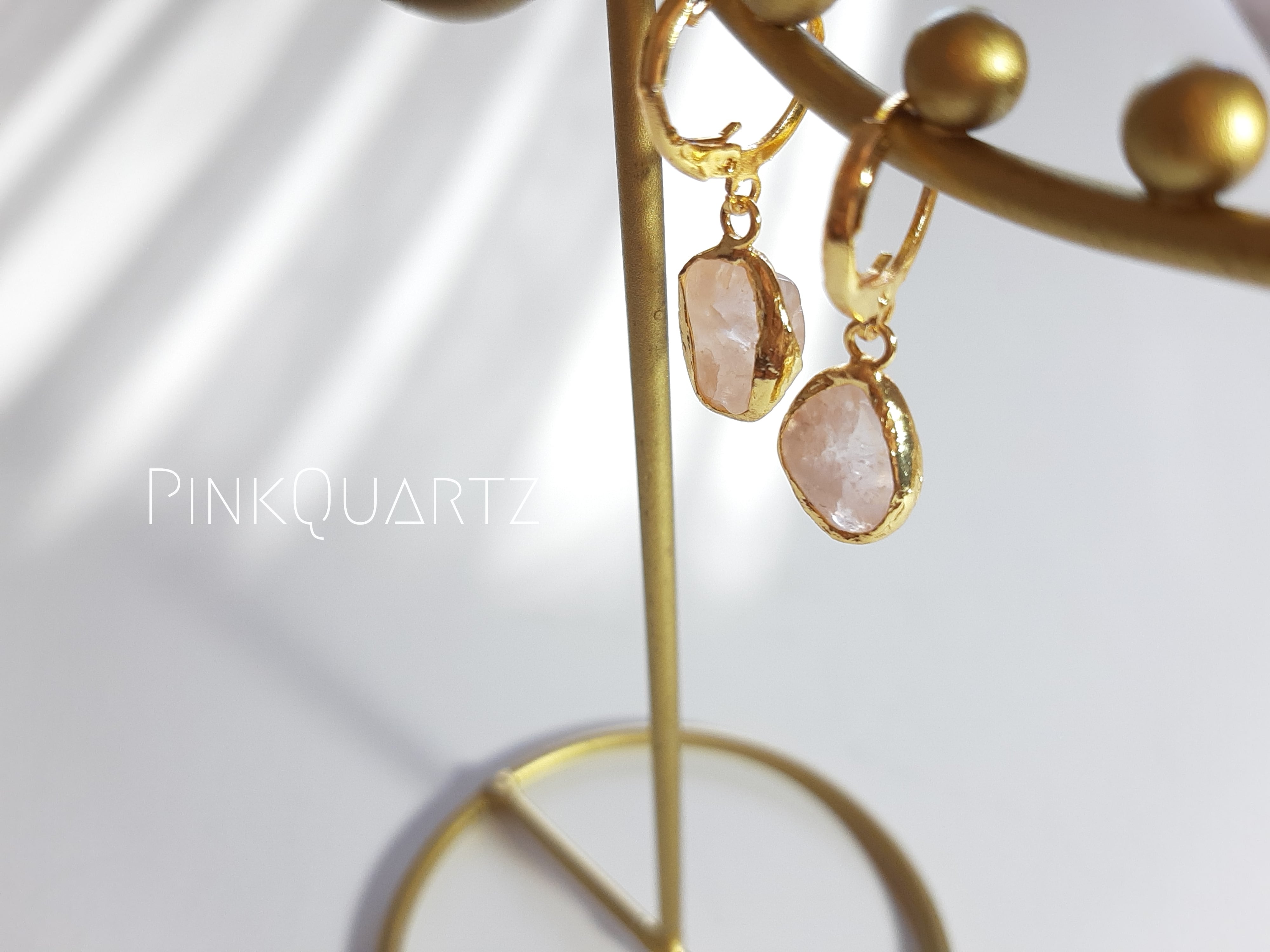 『ピンククォーツ』の世界でひとつの天然石ピアス