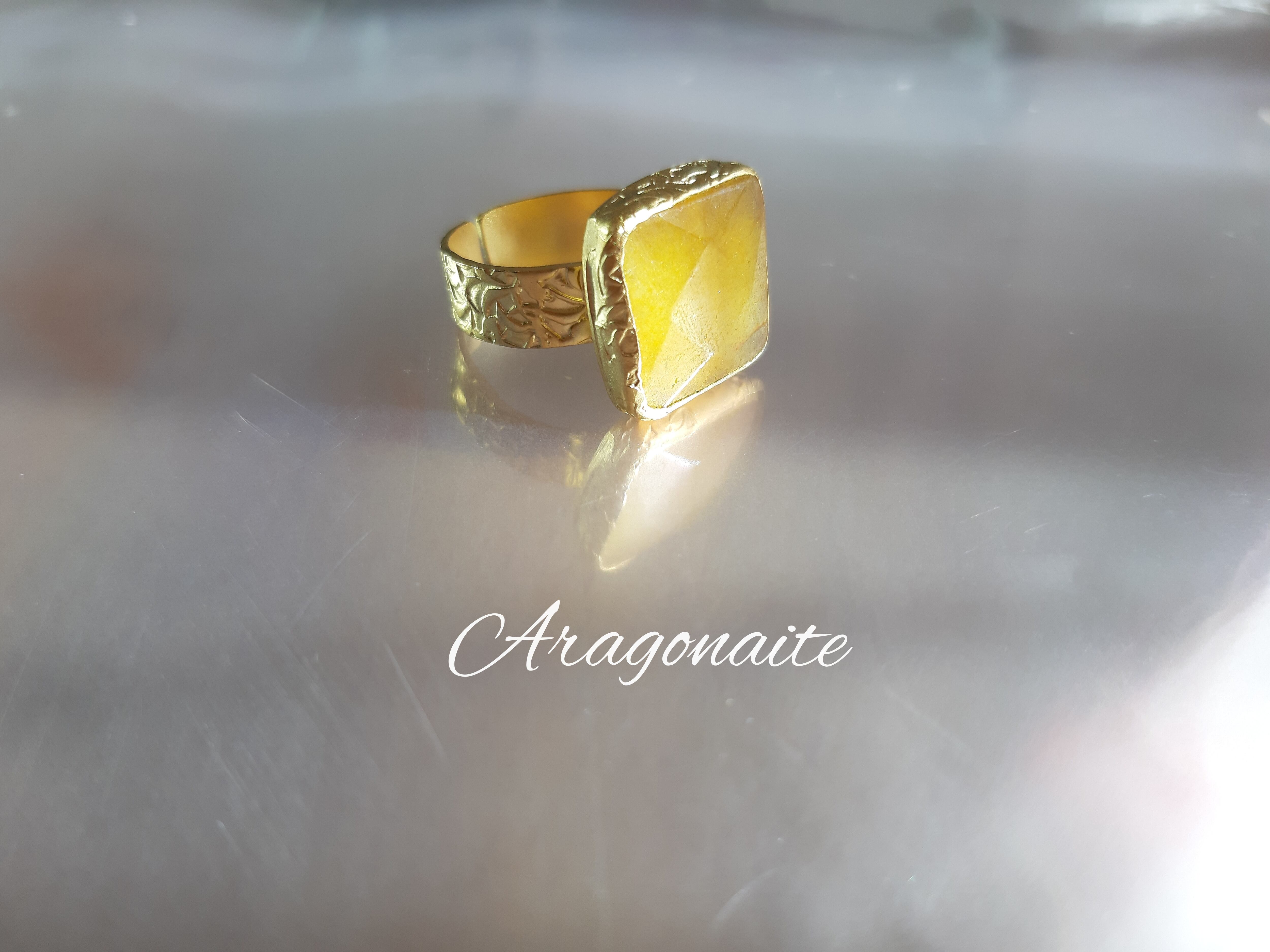素敵な四角型一粒天然石のアラゴナイトのリングです。
