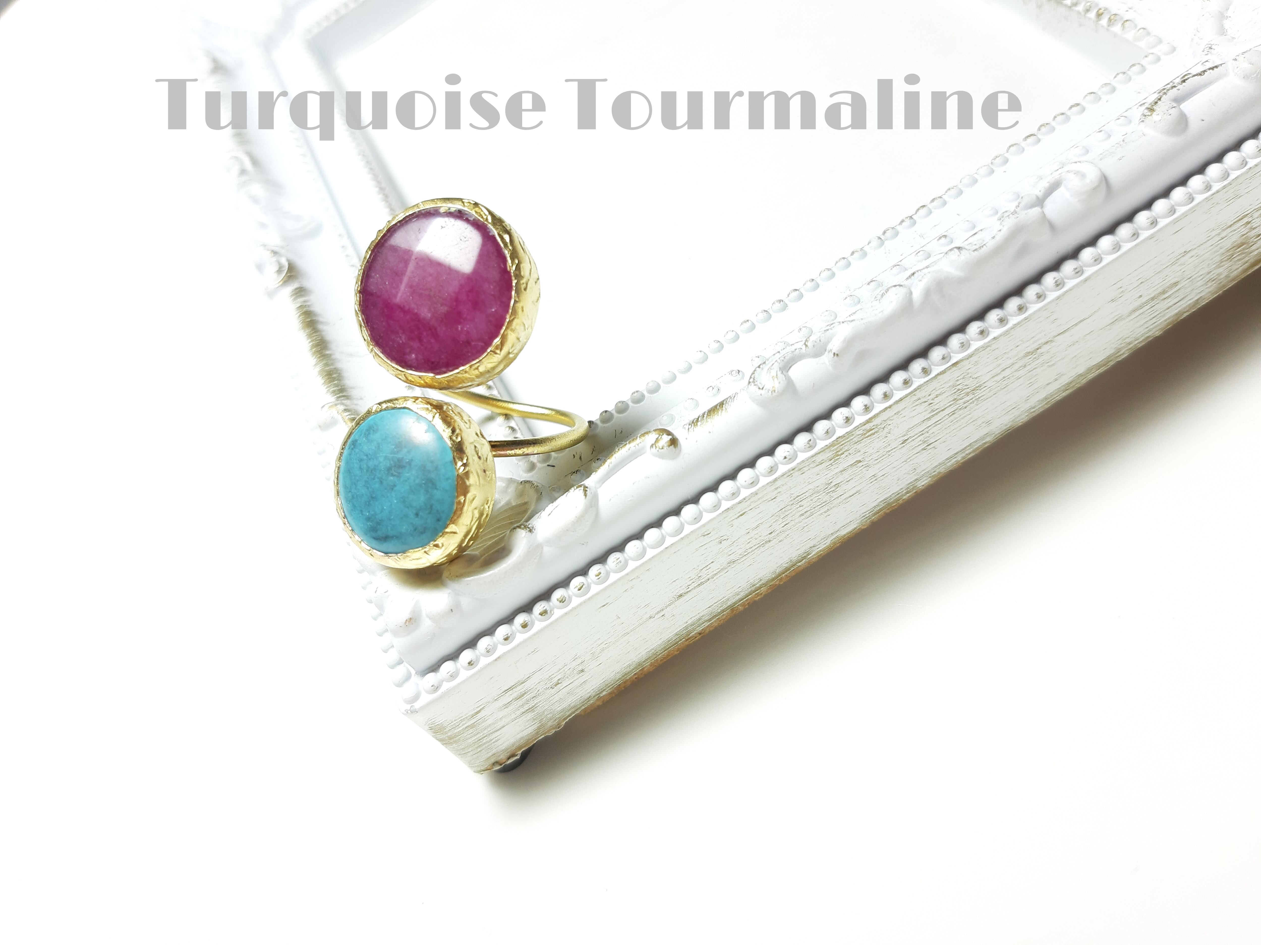 『Turquoise & Pink Tourmaline』の二粒天然石リング~brassシリーズ~
