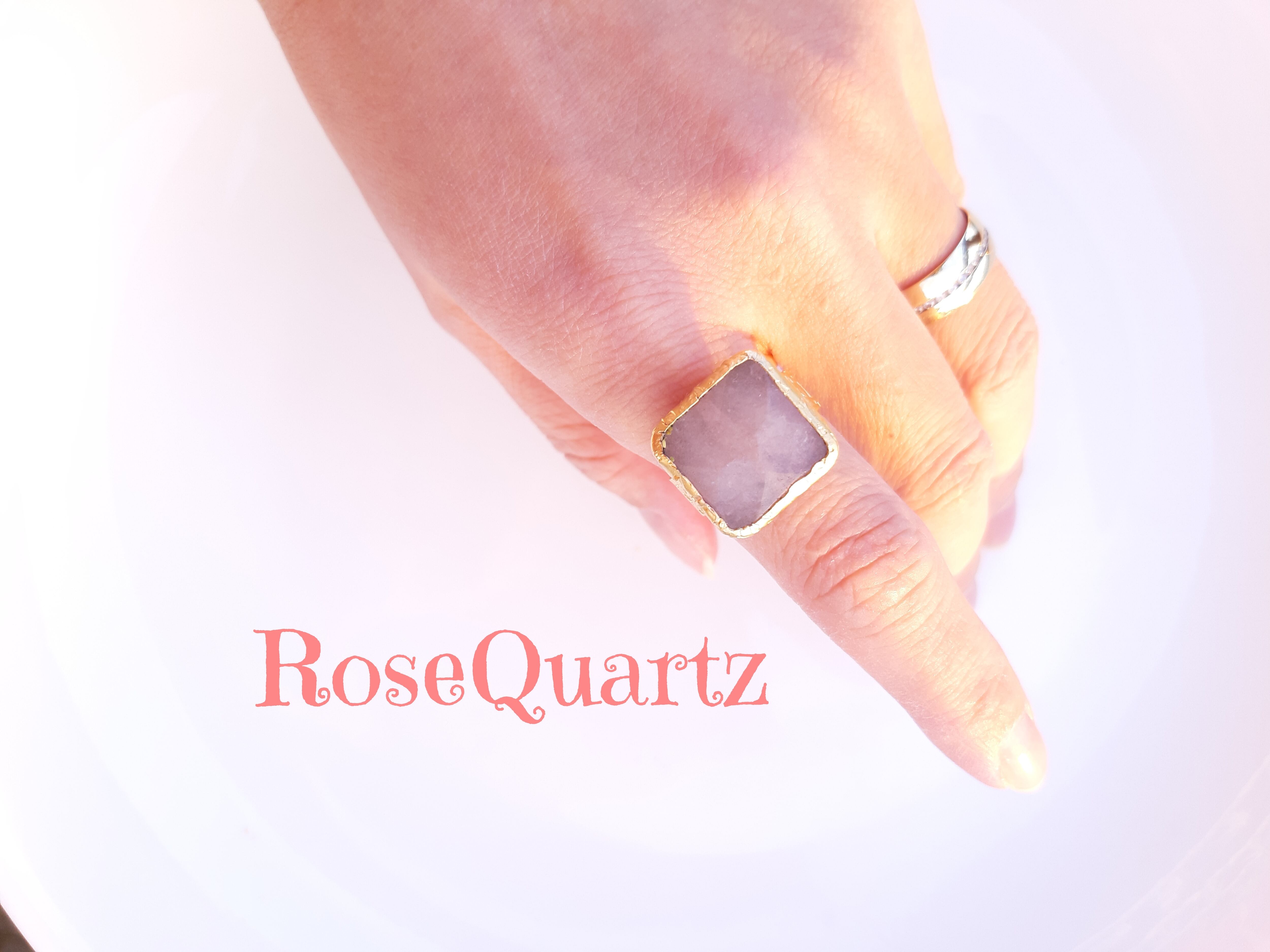 『スクエアローズクォーツ』の世界でひとつの天然石リング