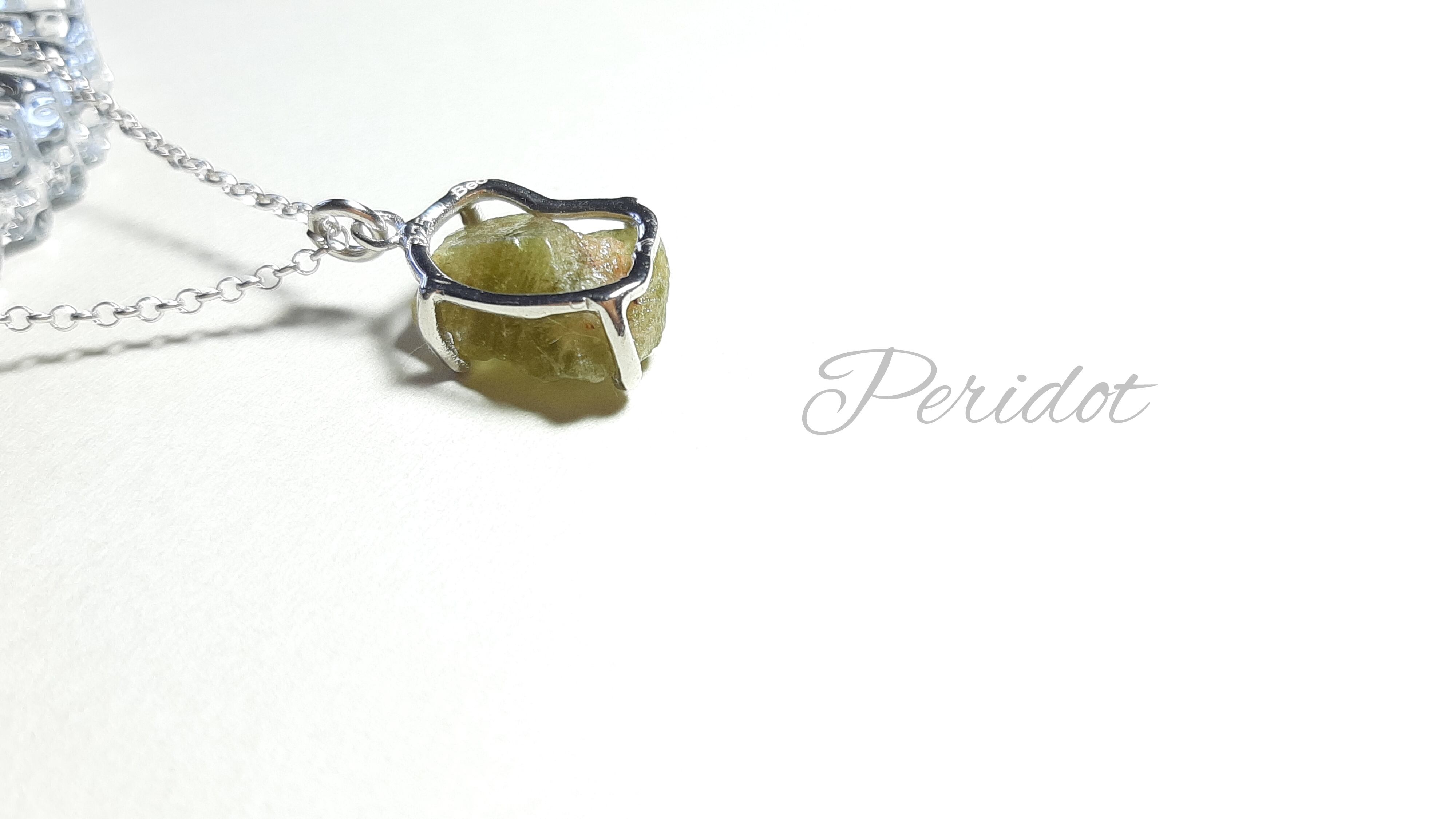 イスタンブールのジュエリーデザイナーがデザインして作った世界でたったひとつのsilver925+ロジウムコーティングの原石ペリドットネックレス★