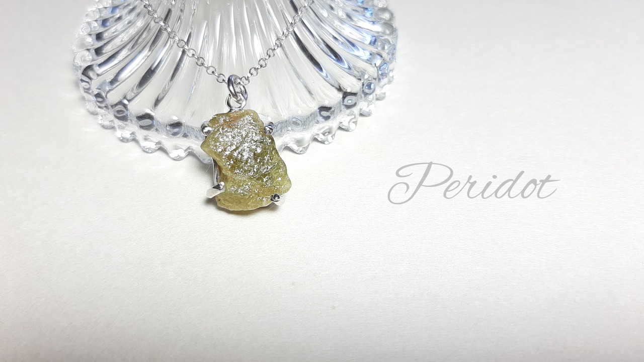 透明感のあるペリドットはなぜか、見ているだけでもパワーがみなぎってくるような、そんな石です。シンプルなデザインなので、普段のファッションにも、お出かけにも色んな場面でお使いいただけます。