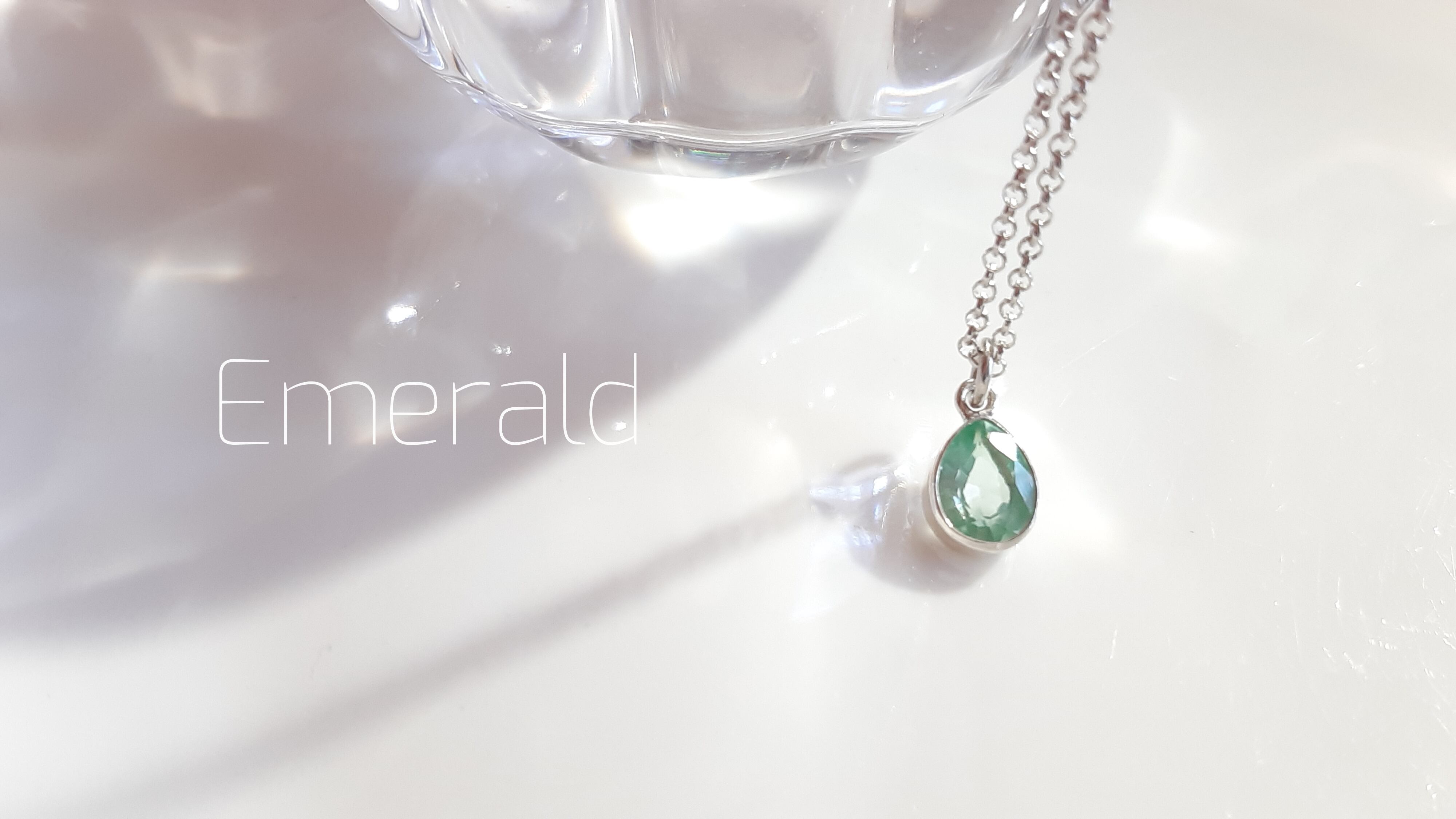 イスタンブールのジュエリーデザイナーがデザインして作った世界でたったひとつのsilver925+ロジウムコーティング(プラチナ仕上げ)のLab Createdエメラルドのネックレス★