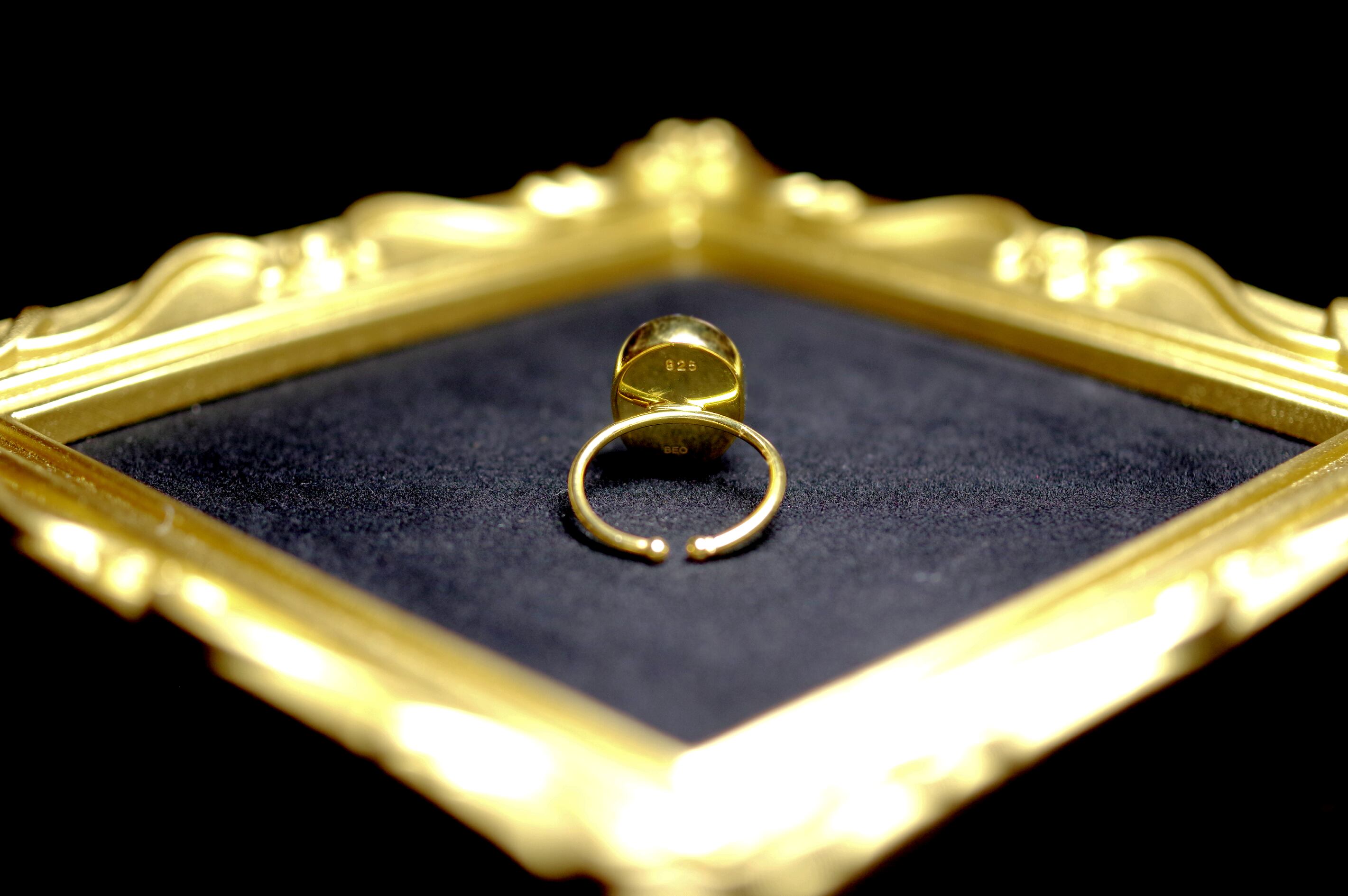 イスタンブールのジュエリーデザイナーが作った世界でたったひとつのsilver925 + ミクロン22kgpコーティングの宝石質のブルーカルセドニーリング★