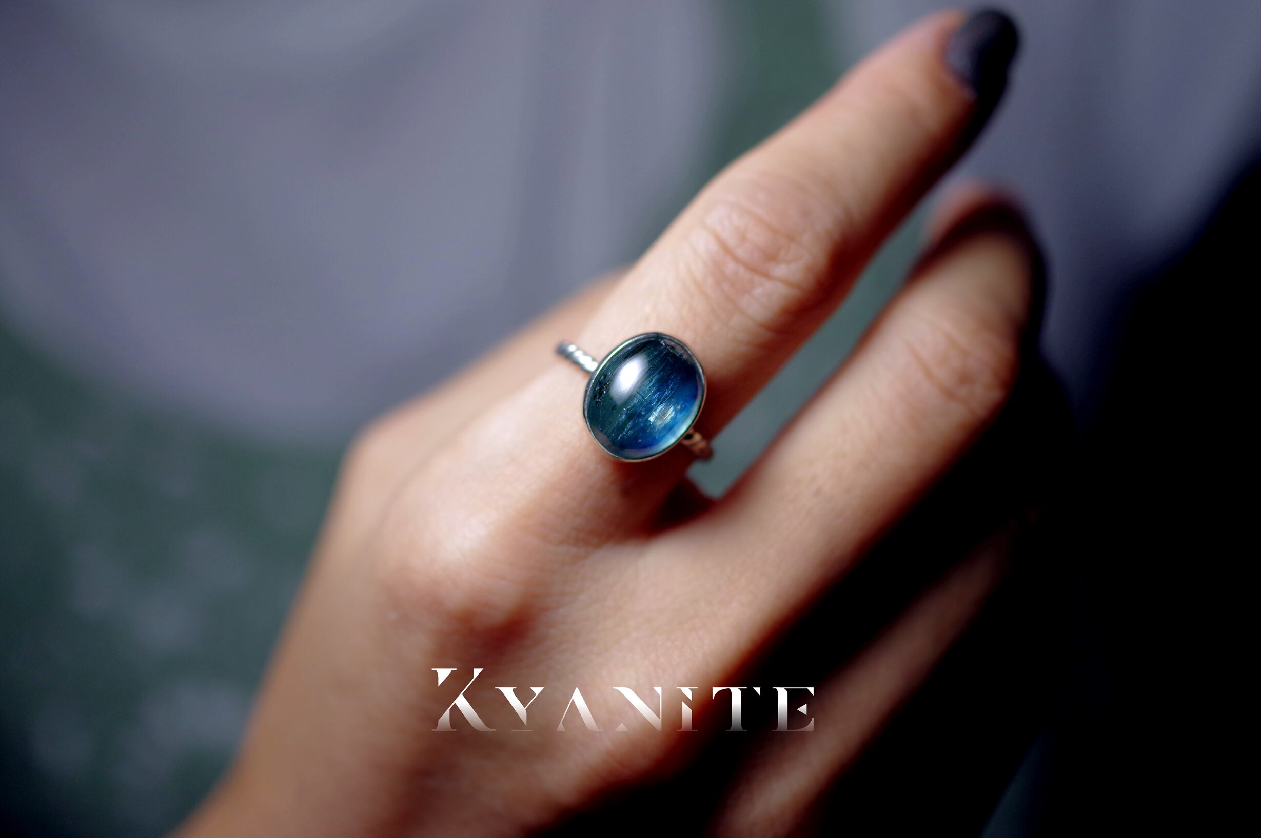 新作 ☆『カイヤナイト』☆の世界でひとつの天然石リングsilver925 + ロジウムコーティング