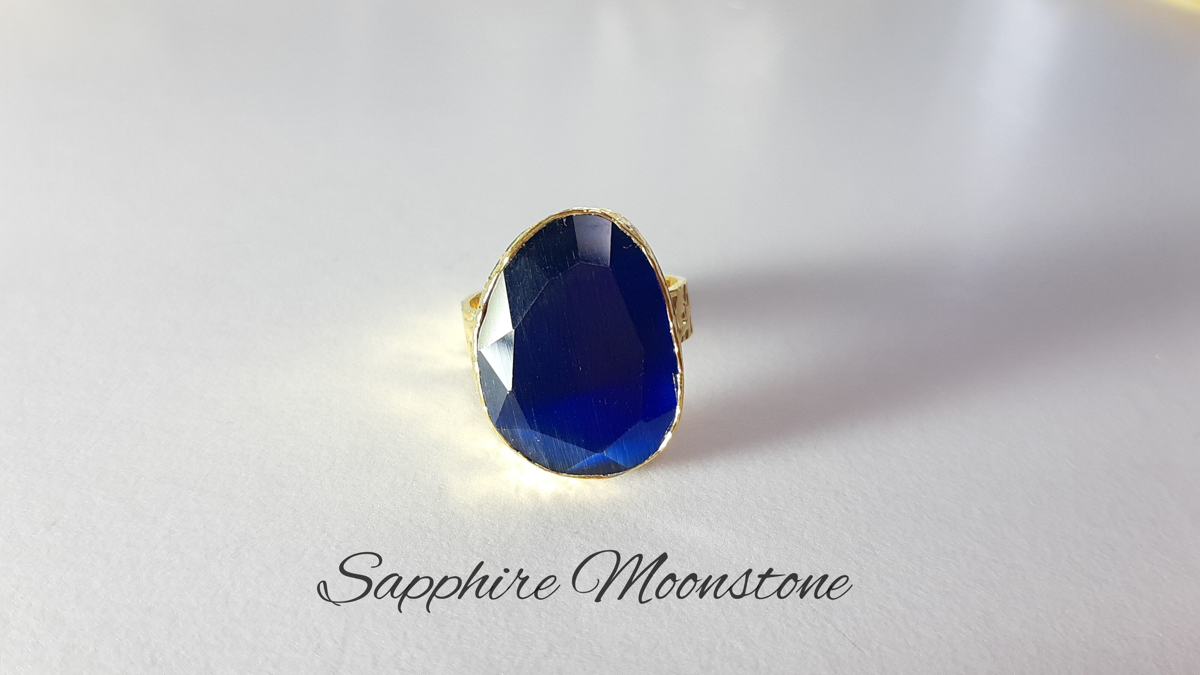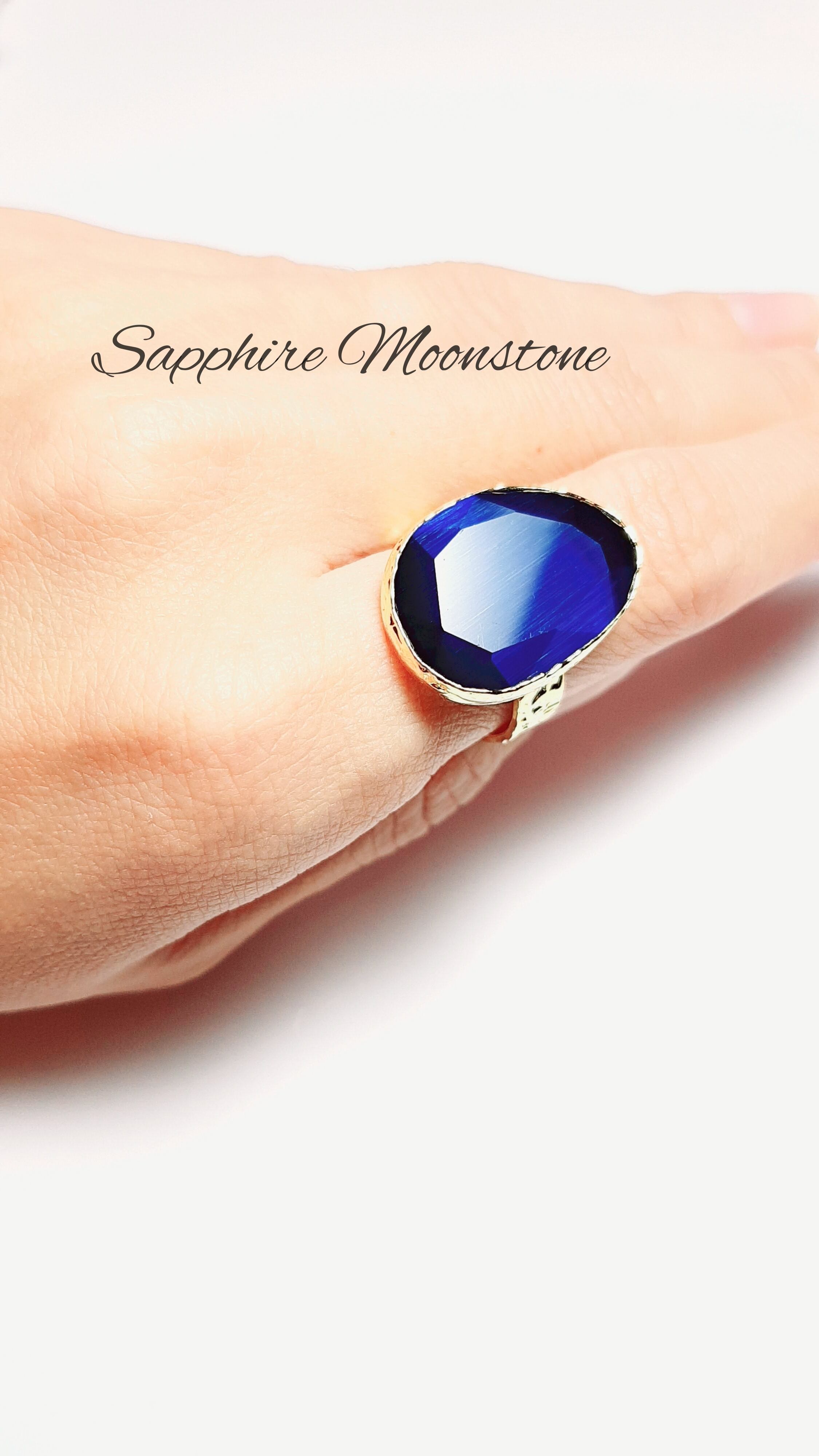 サファイアのような深い青がキレイな『サファイアムーンストーン』の素敵な1粒リングです。大きめで角度を変えると石がすごく綺麗すぎるくらい綺麗です。