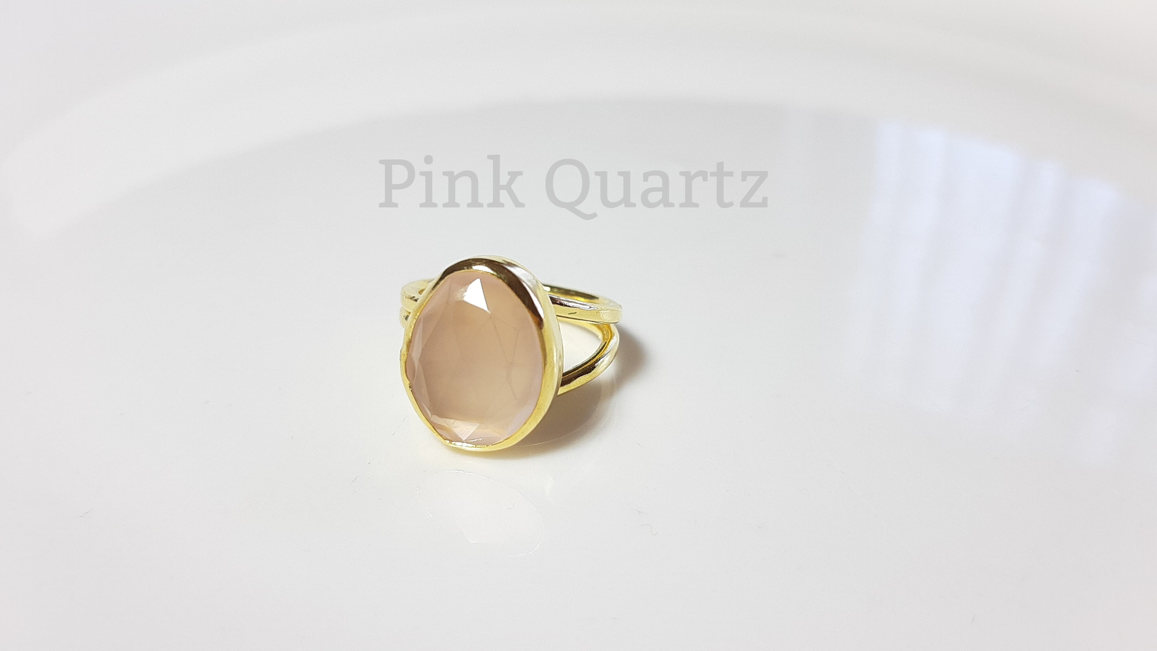 優しさがあふれだしているようなローズクォーツ。落ちつきのあるピンクが可愛いリング。