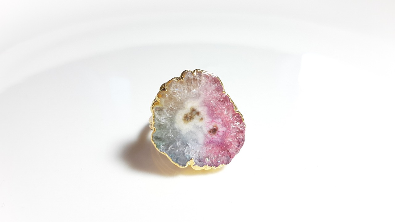 最新作レア☆一点『カラフルフラワーソーラークォーツ』の世界でひとつの天然石リング