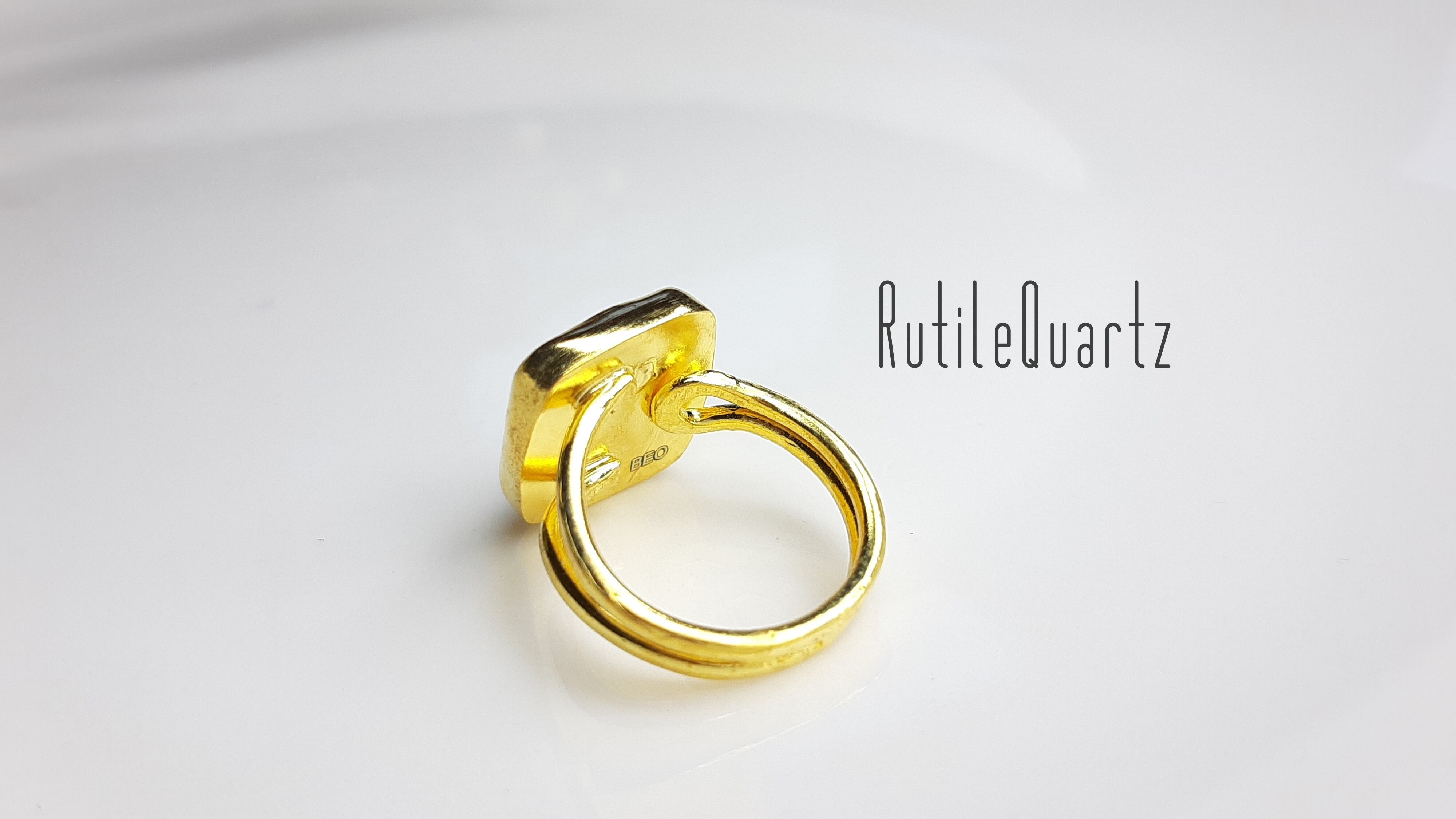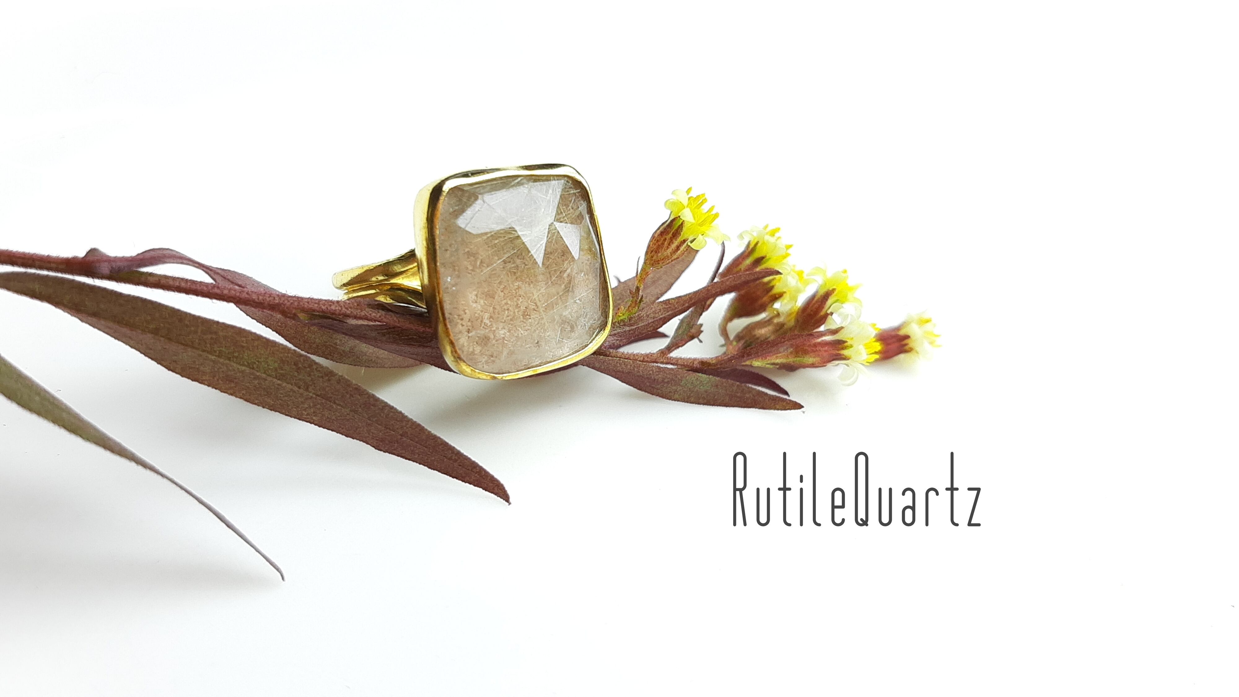 高品質の魅力的なスクエア型ルチルクォーツのスタイリッシュリング。