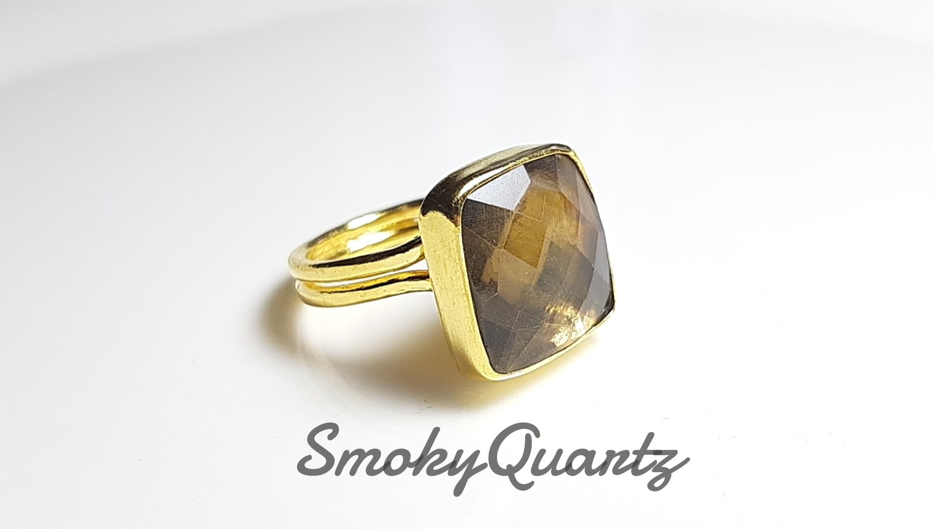 スクエア型の透明感があるブラウンが素敵なスモーキークォーツ。