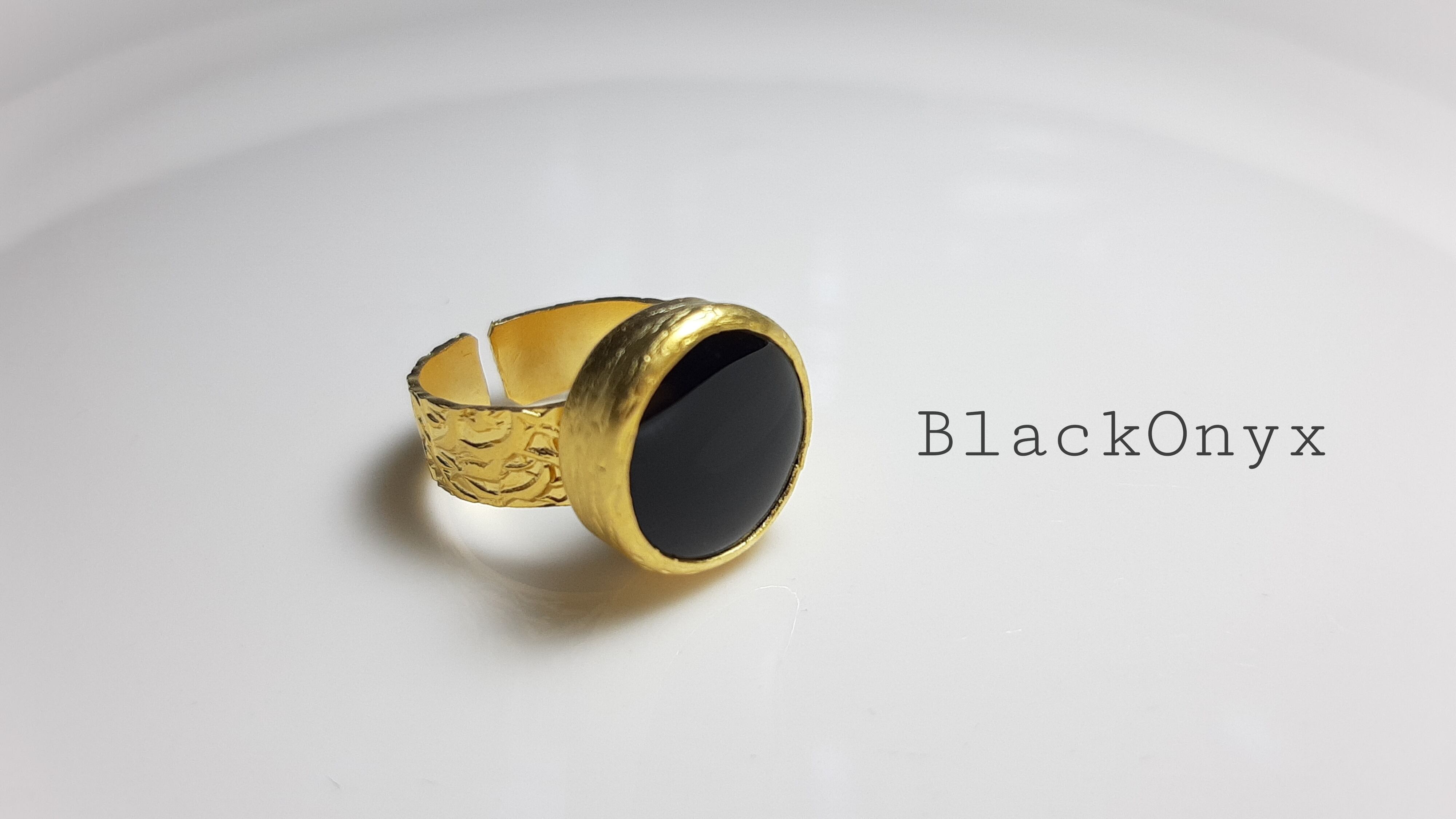 つるんとしたブラックオニキスにゴールドがまた素敵な色合いで、つけるだけでお洒落感アップします(*^^*)