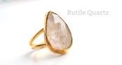 高品質の魅力的なスクエア型ルチルクォーツのスタイリッシュリング。