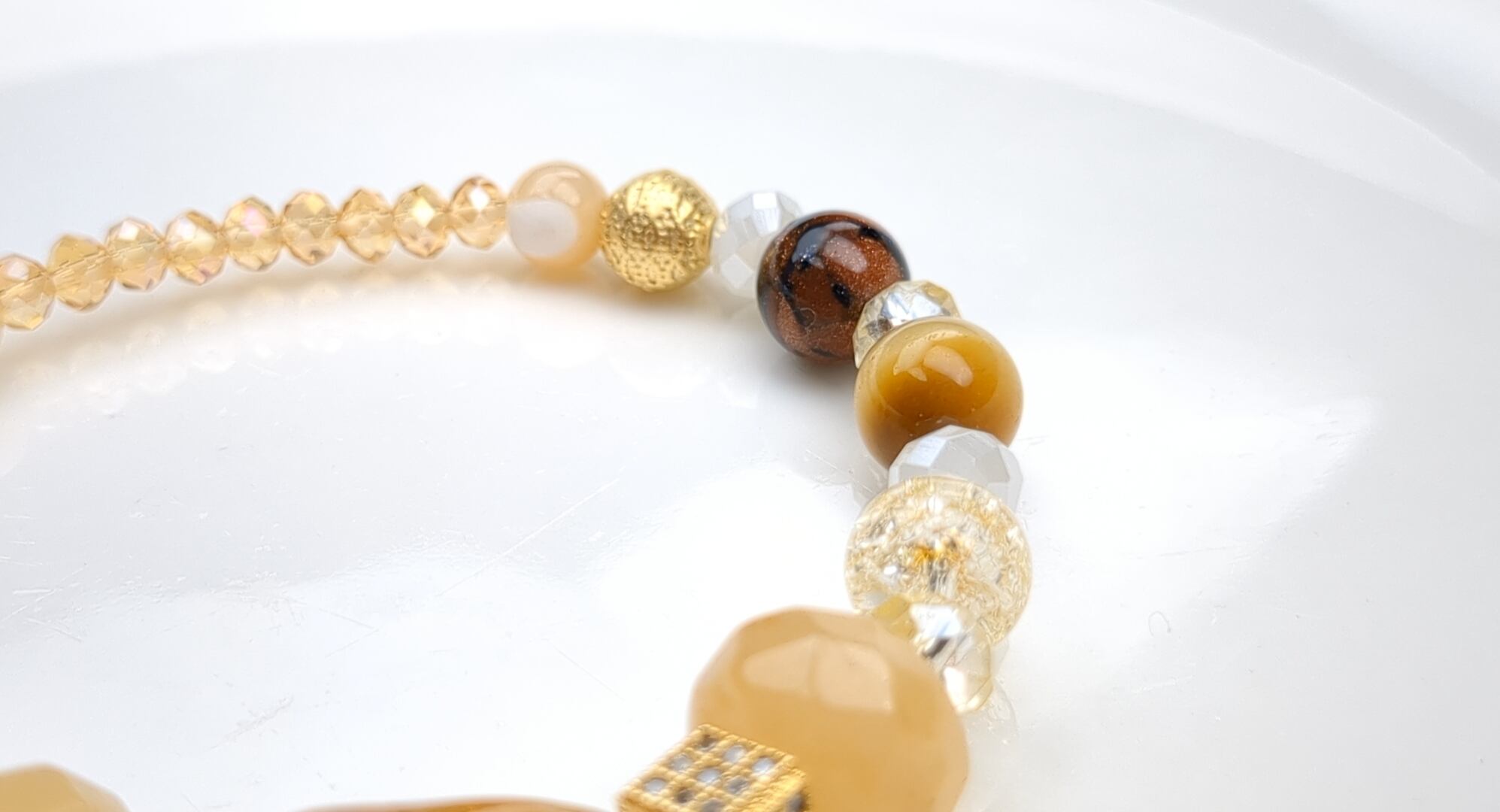 「シトリン✕オレンジジェイド✕タイガーアイ✕ゴールドストーン」天然石ブレスレット