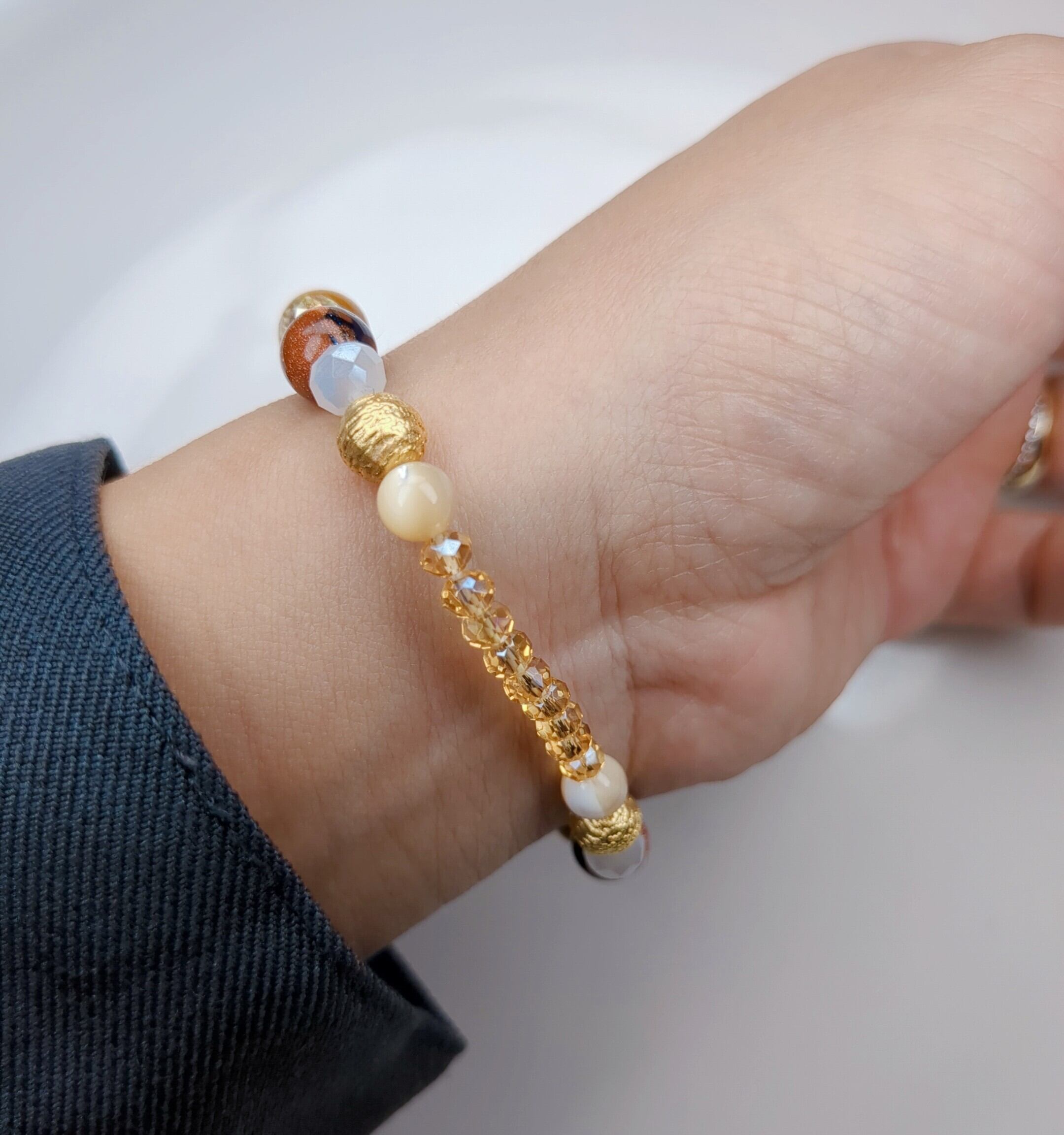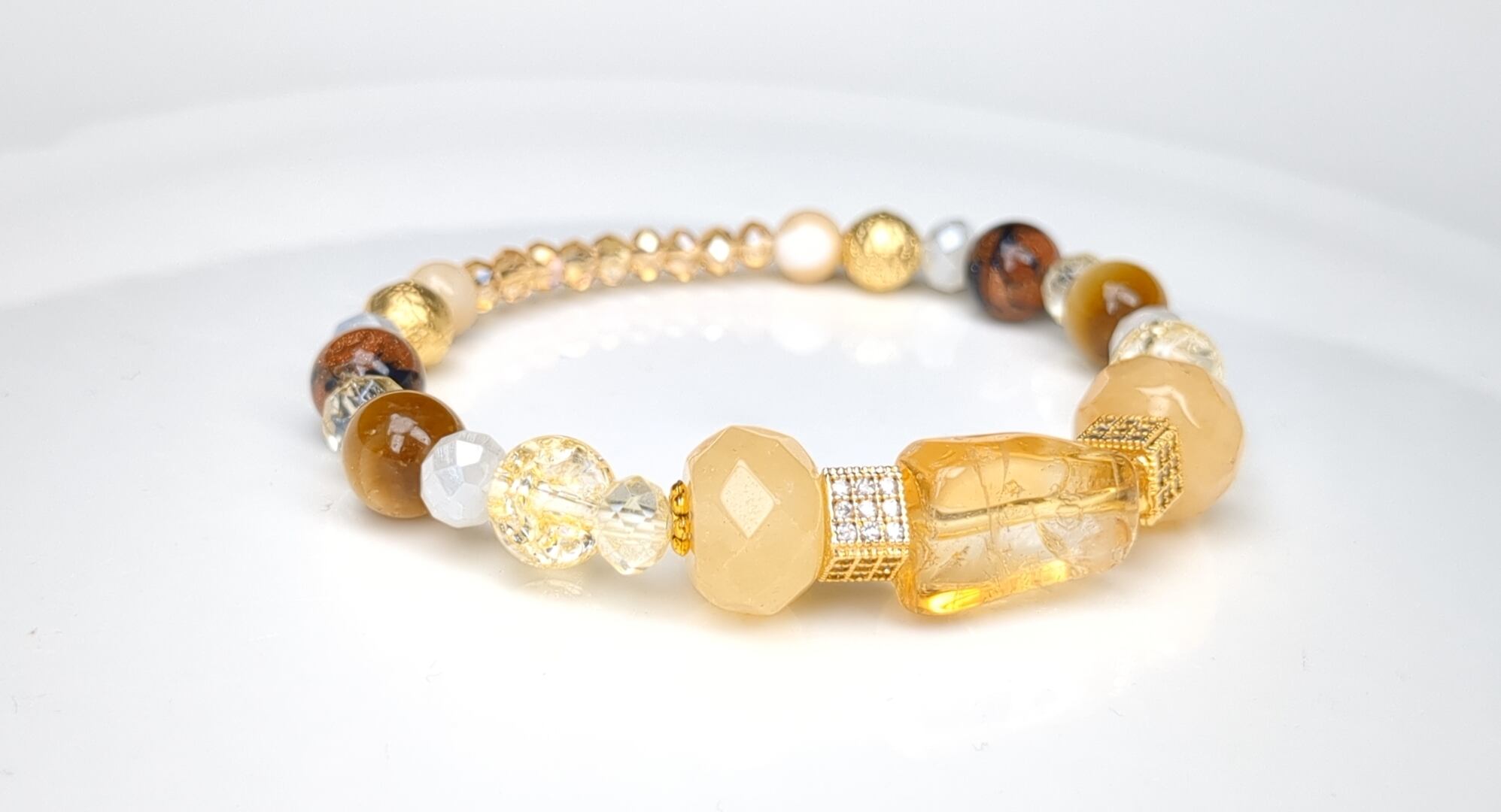 大きめシトリンとタイガーアイやゴールドストーン、オレンジジェイドなどを組み合わせて創ったブレスレット★