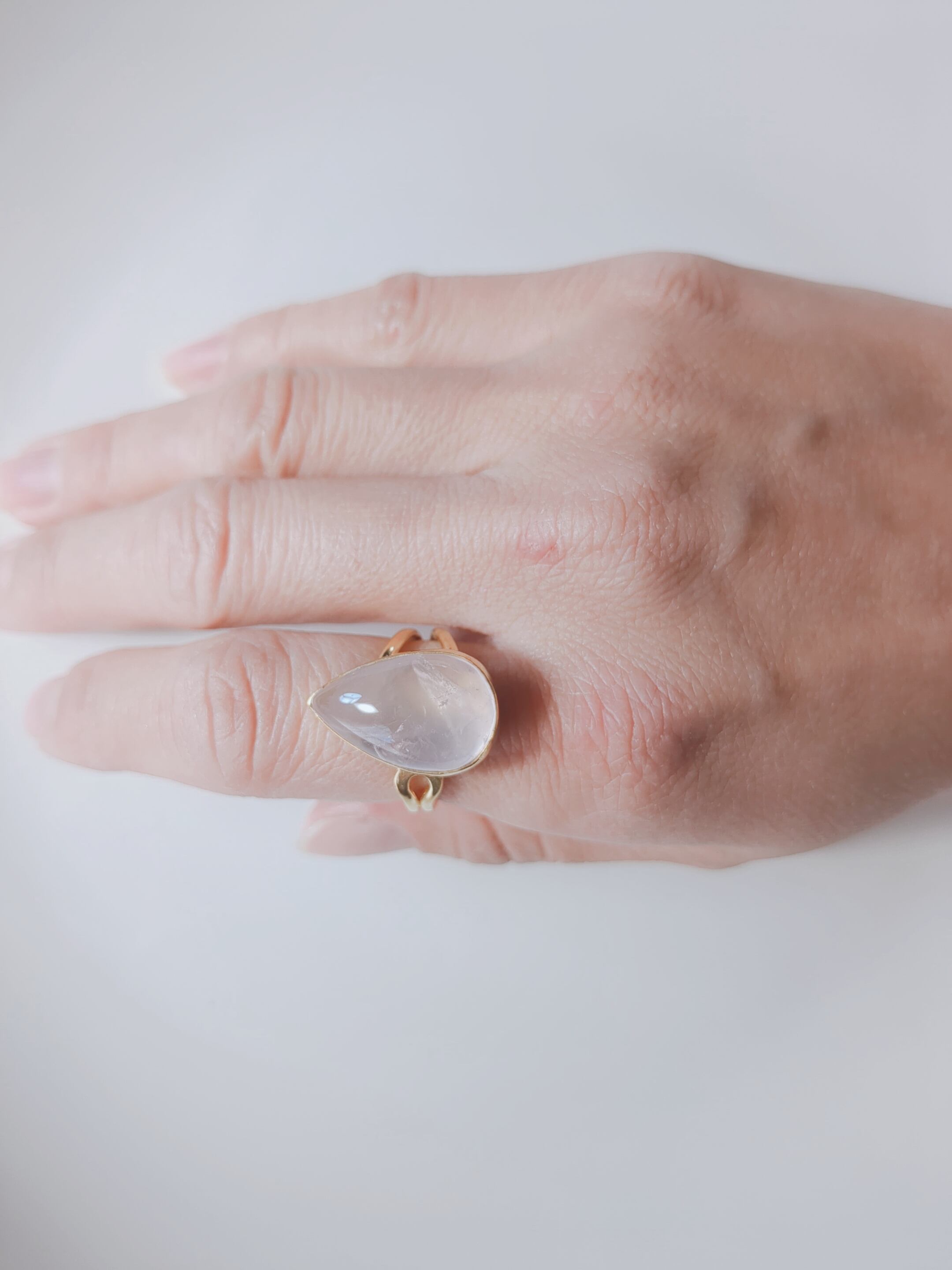 優しさがあふれだしているつるんと可愛いローズクォーツ。落ちつきのある透明感ピンクが可愛いリング。