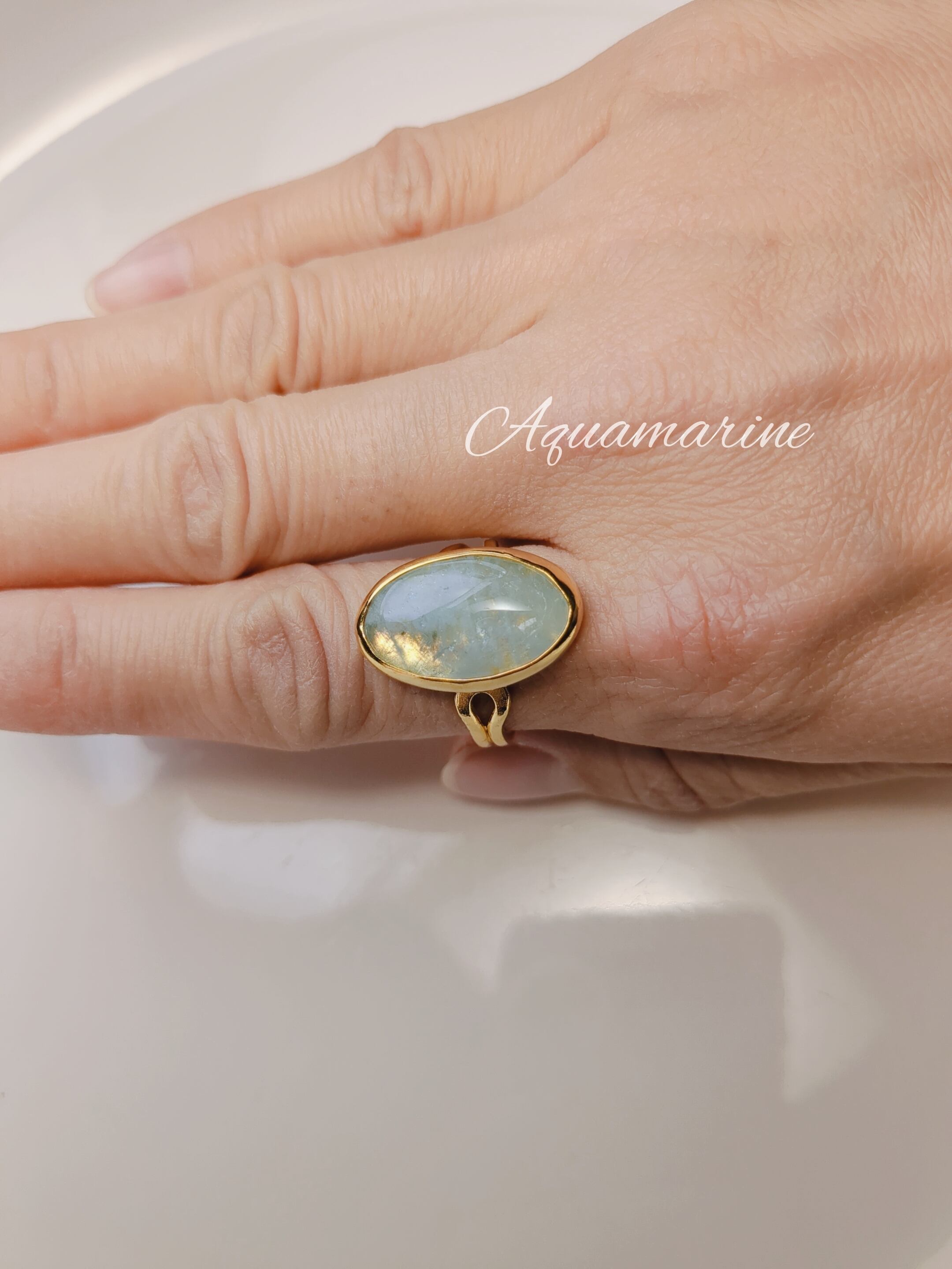 こちらの石はリングを、動かすとアクアマリンがギラッと光ります。
