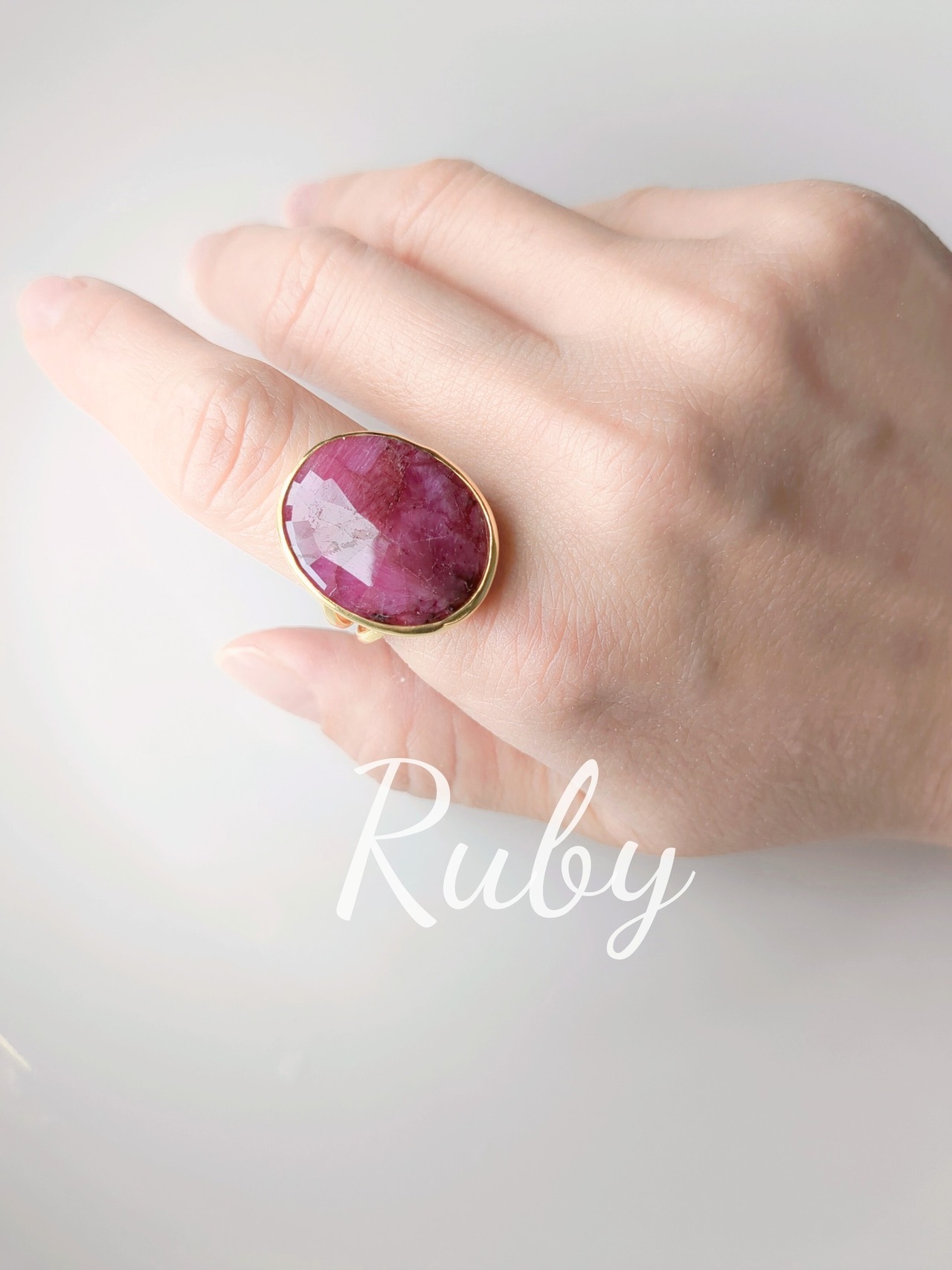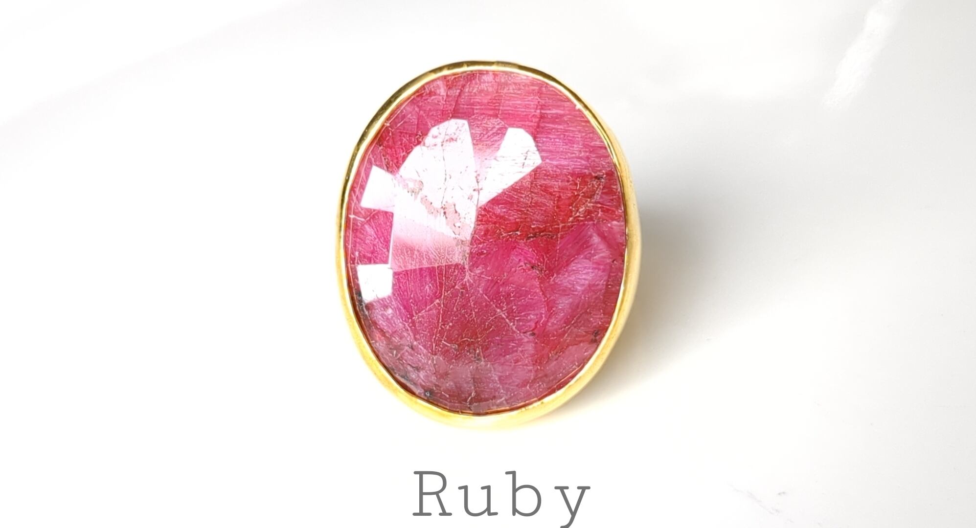 最新作「煌めくチェリールビー」の世界でひとつの天然石リング