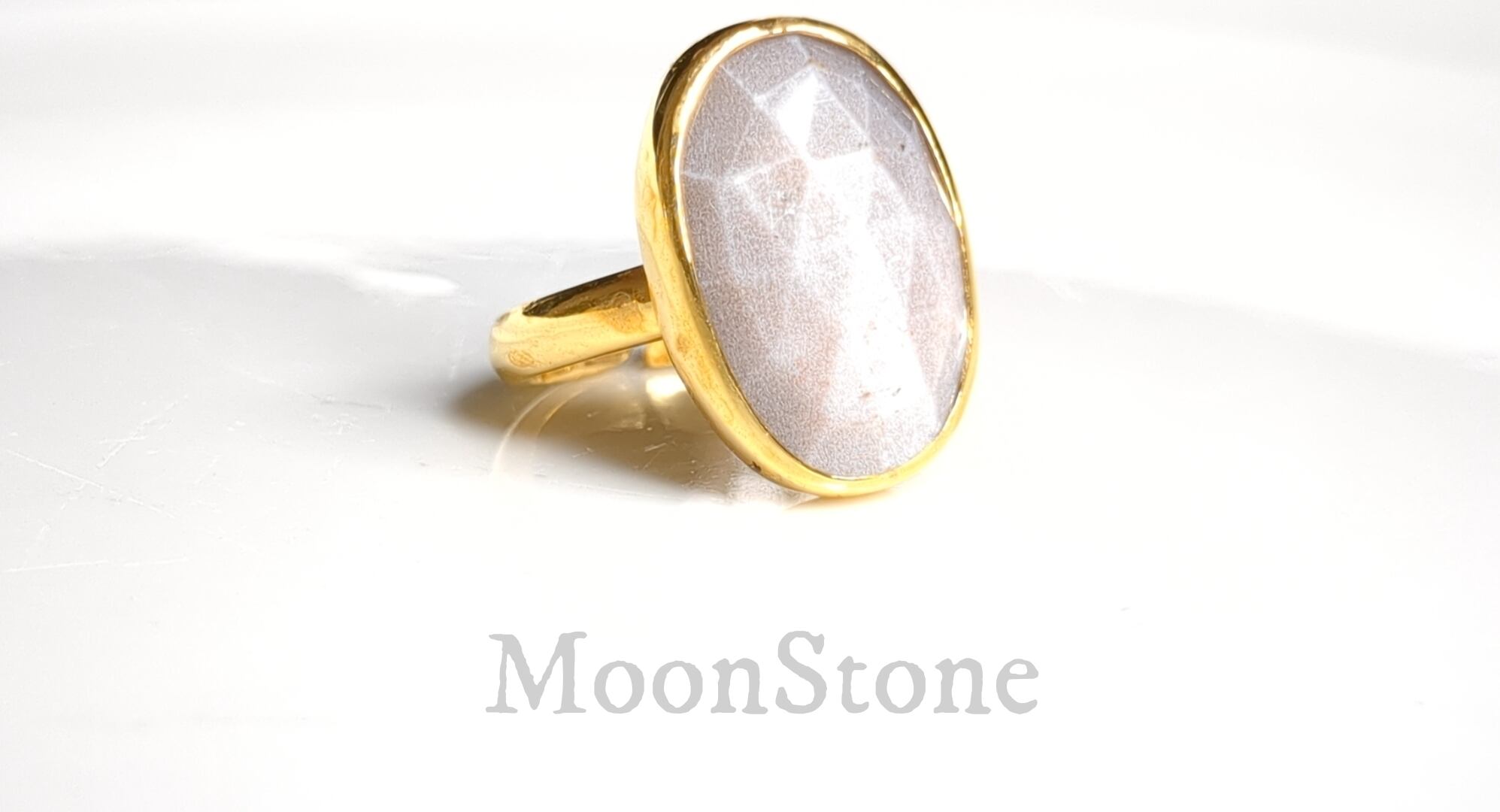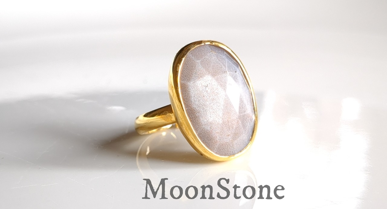 最新作「ホワイトベージュムーンストーン」の世界でひとつの天然石リング