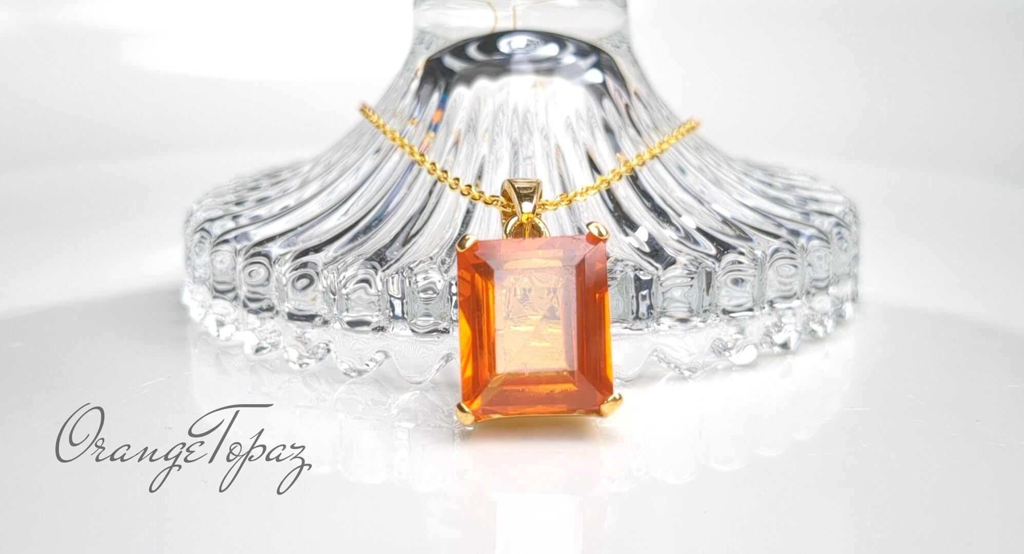 最新作★「オレンジトパーズ」の世界でひとつの天然石ネックレス