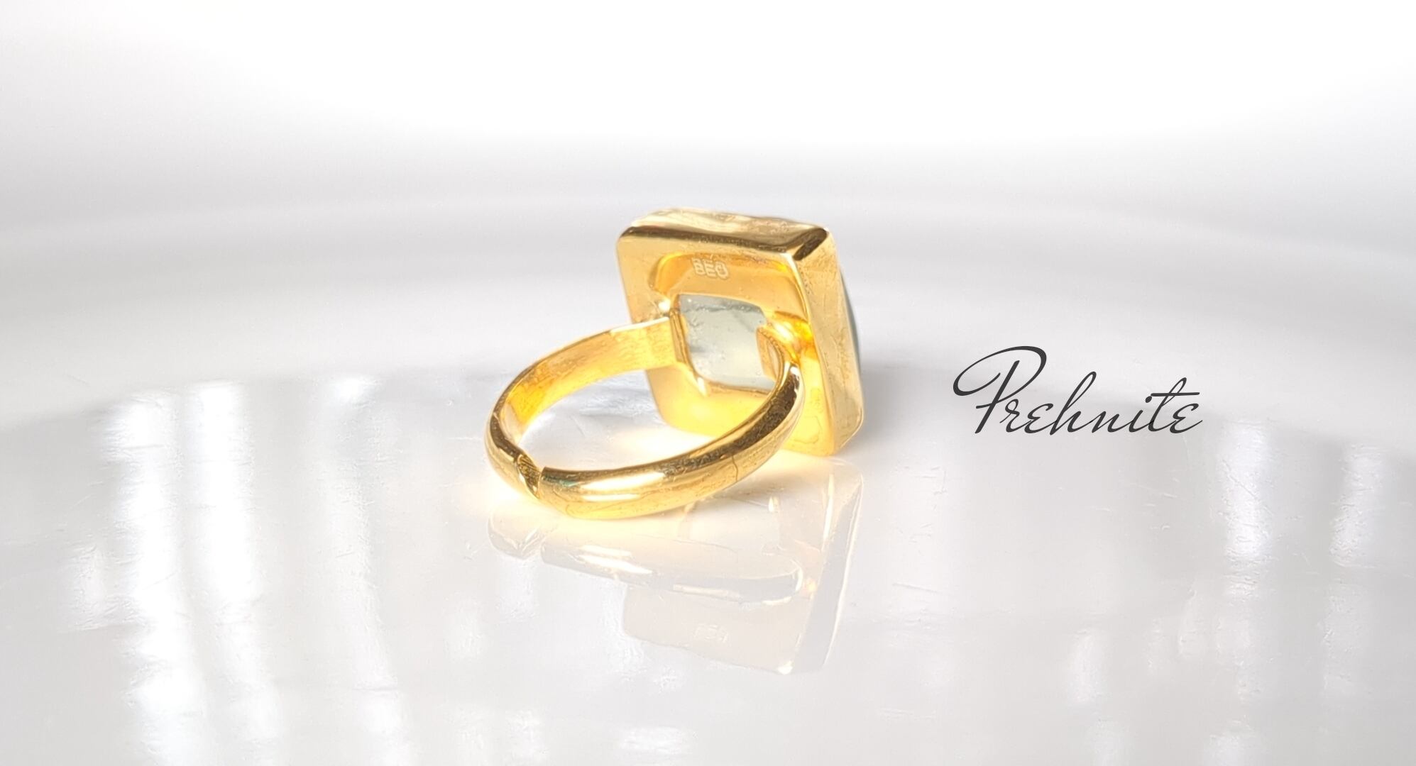 プックリスクエア型の可愛いプレナイトリング。透明感がある優しさのあるプレナイトを包み込んだシンプルデザインが可愛く美しく身に着けるだけでオシャレさが増します★